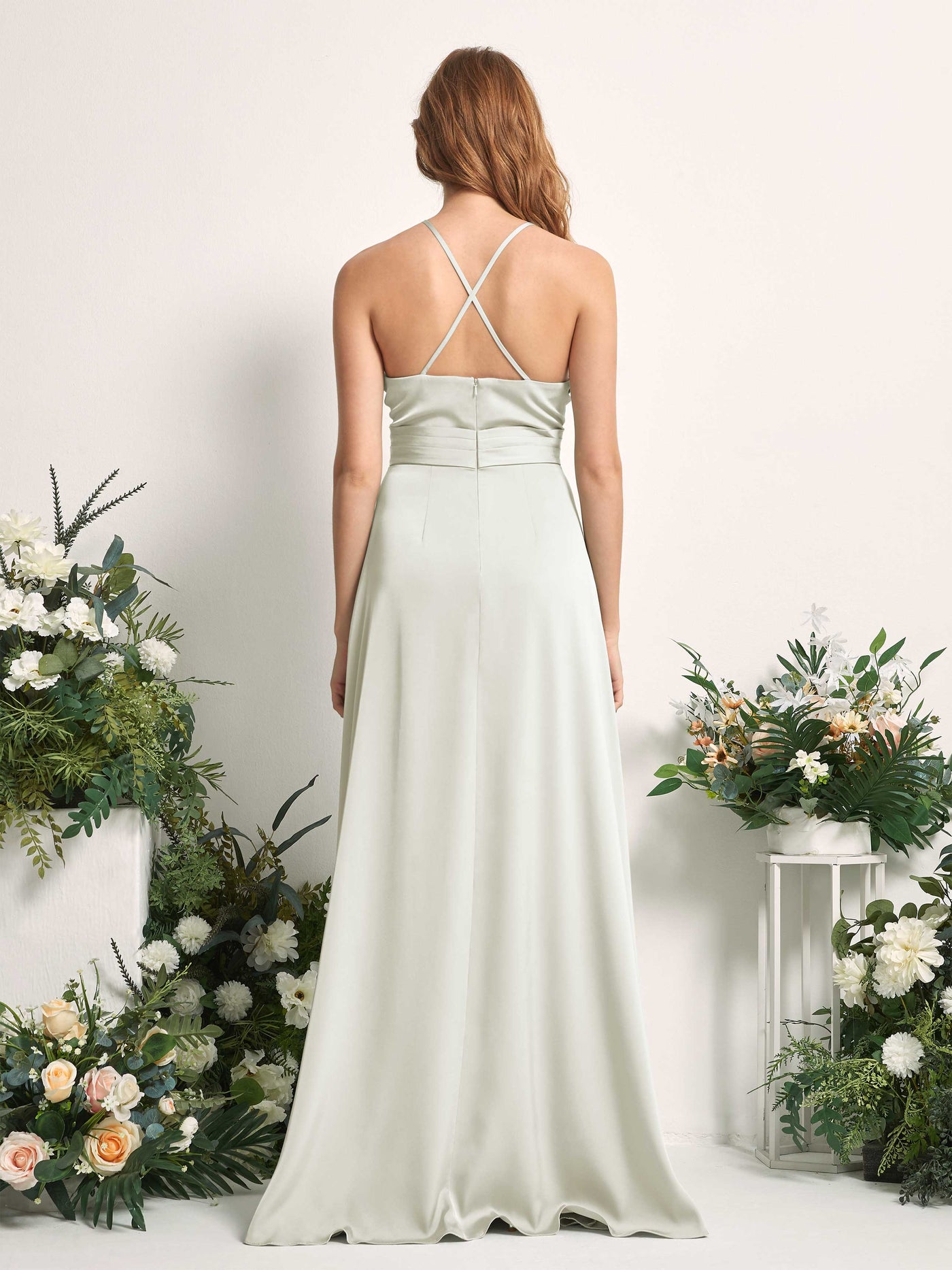 Carlyna Allison A-Line Sage Green Satin Bridesmaid Dress Maxi Sleeveless V-Neck Dress Side View 2