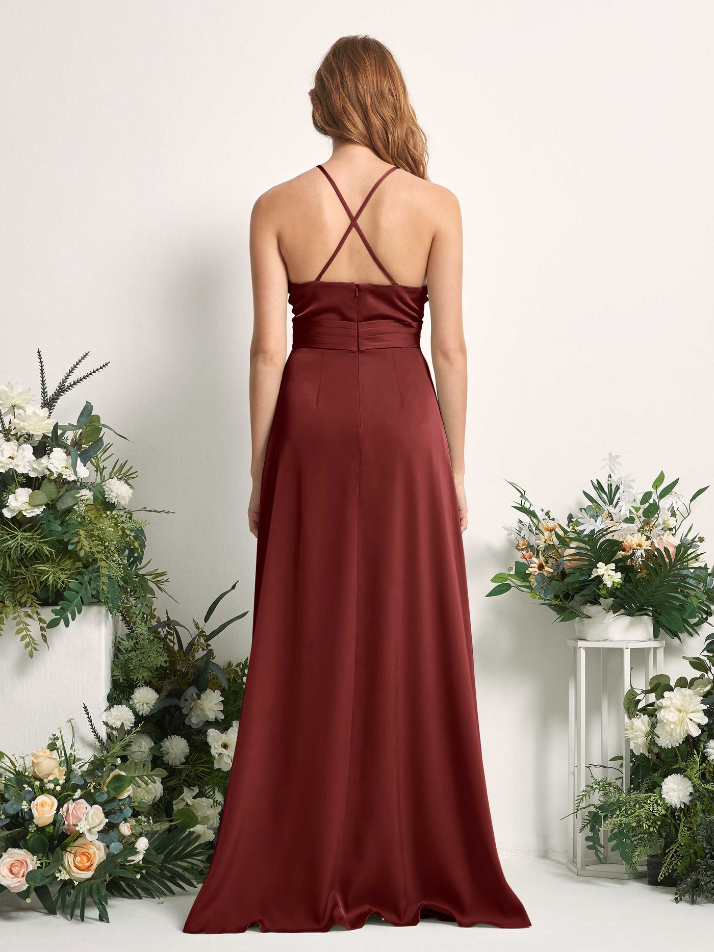 Carlyna Allison A-Line Burgundy Satin Bridesmaid Dress Maxi Sleeveless V-Neck Dress Front View