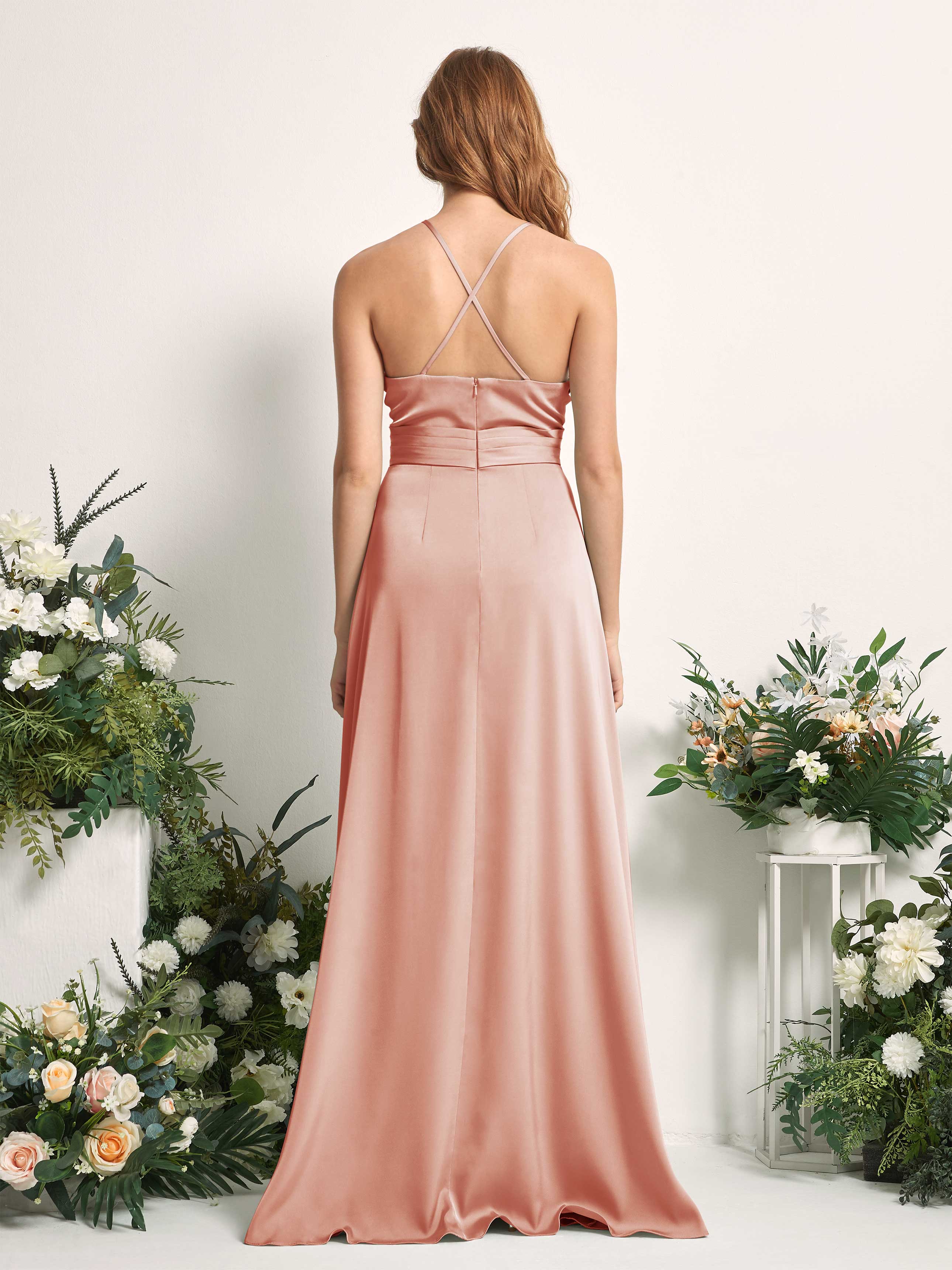 Carlyna Allison A-Line Desert Rose Satin Bridesmaid Dress Maxi Sleeveless V-Neck Dress Side View 2