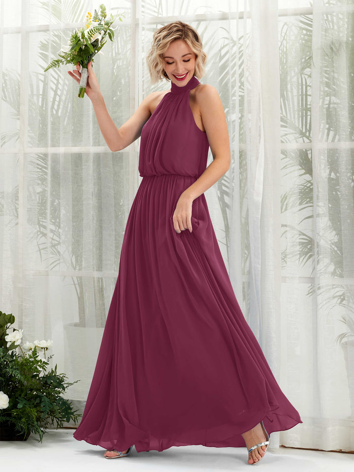 Carlyna Bess A-Line Burgundy Bridesmaid Dress Maxi Sleeveless Halter Dress Front View