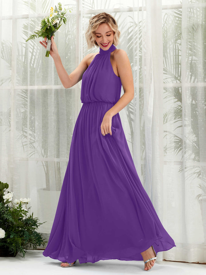 Carlyna Bess A-Line Purple Bridesmaid Dress Maxi Sleeveless Halter Dress Front View