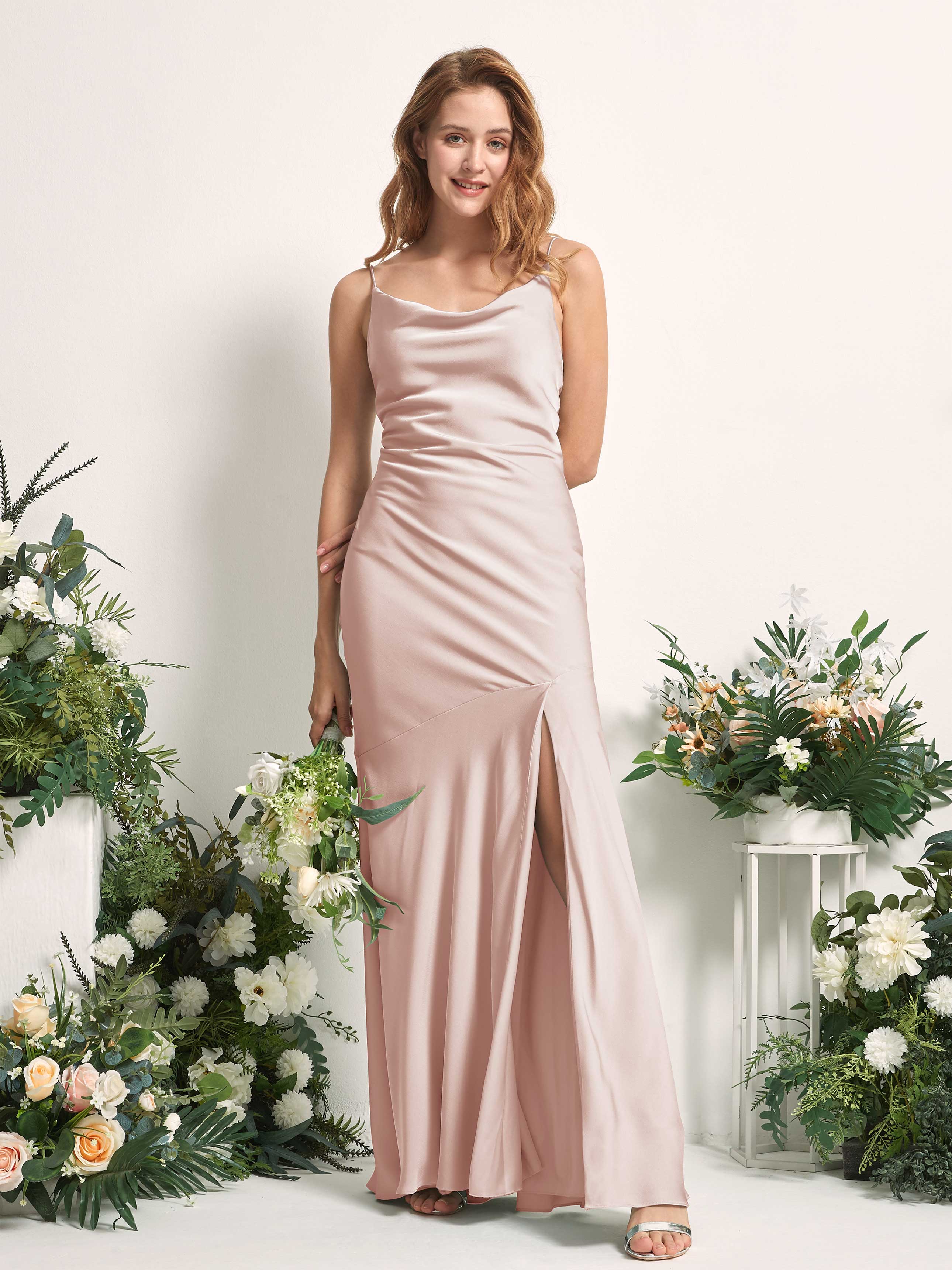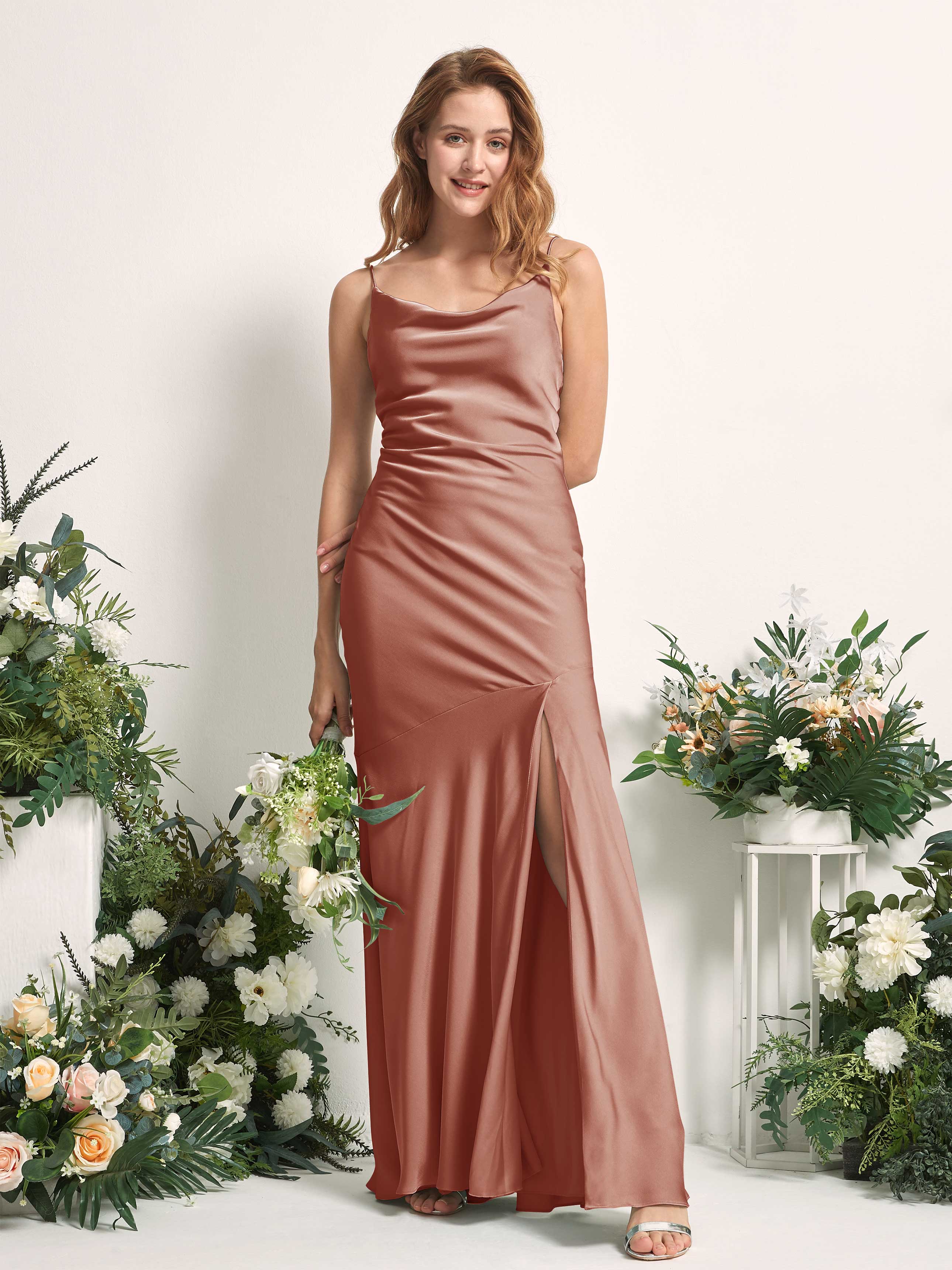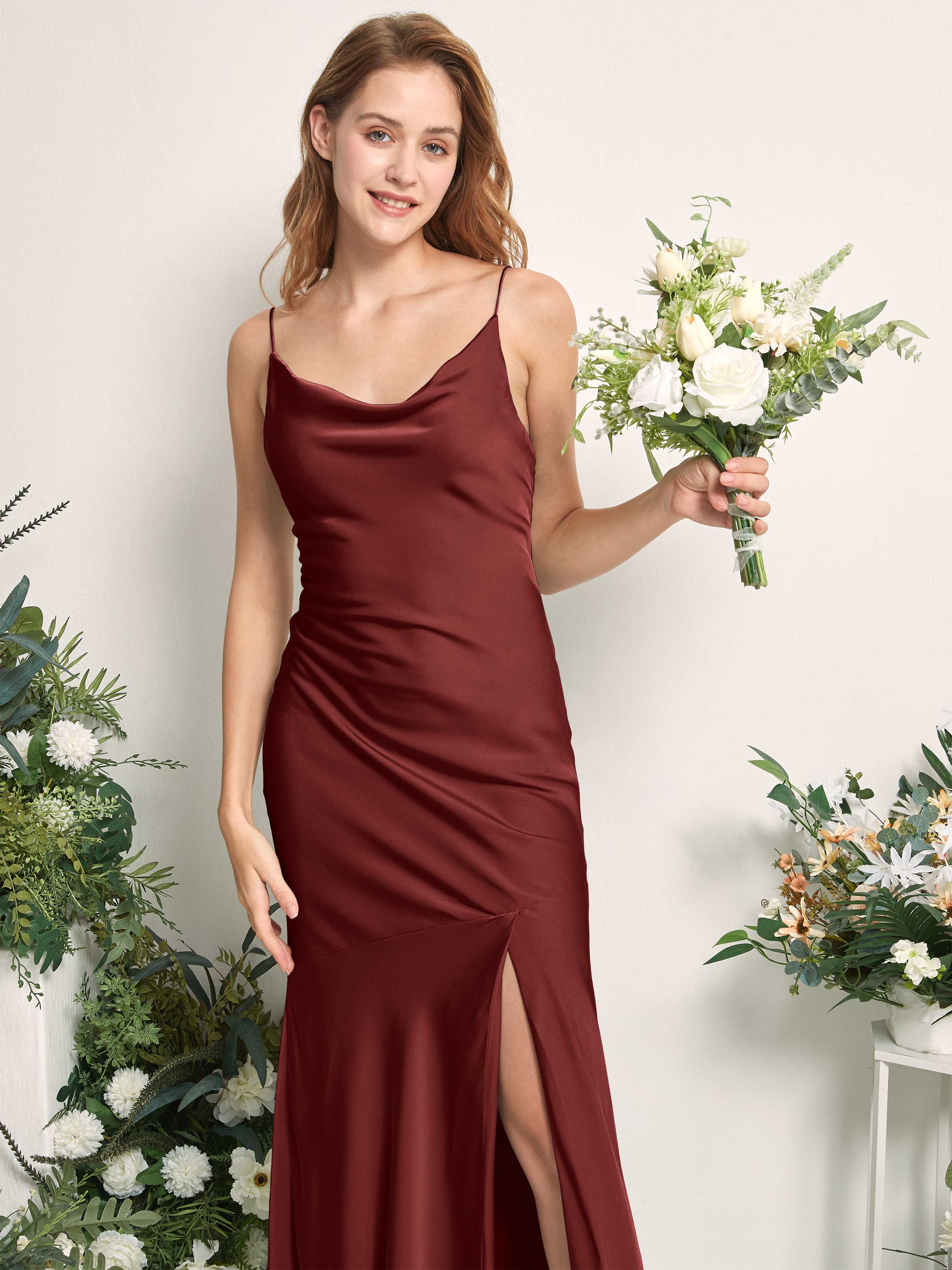 The Miranda Satin Dress is a captivating and sophisticated choice for your bridesmaids. This elegant gown is crafted from luxurious satin that drapes beautifully, showcasing a figure-flattering silhouette like a mermaid or sheath. The sophisticated cowl neck adds a touch of drama and elegance, while the leg slit creates a hint of allure. Available in a range of colors to complement your wedding palette.