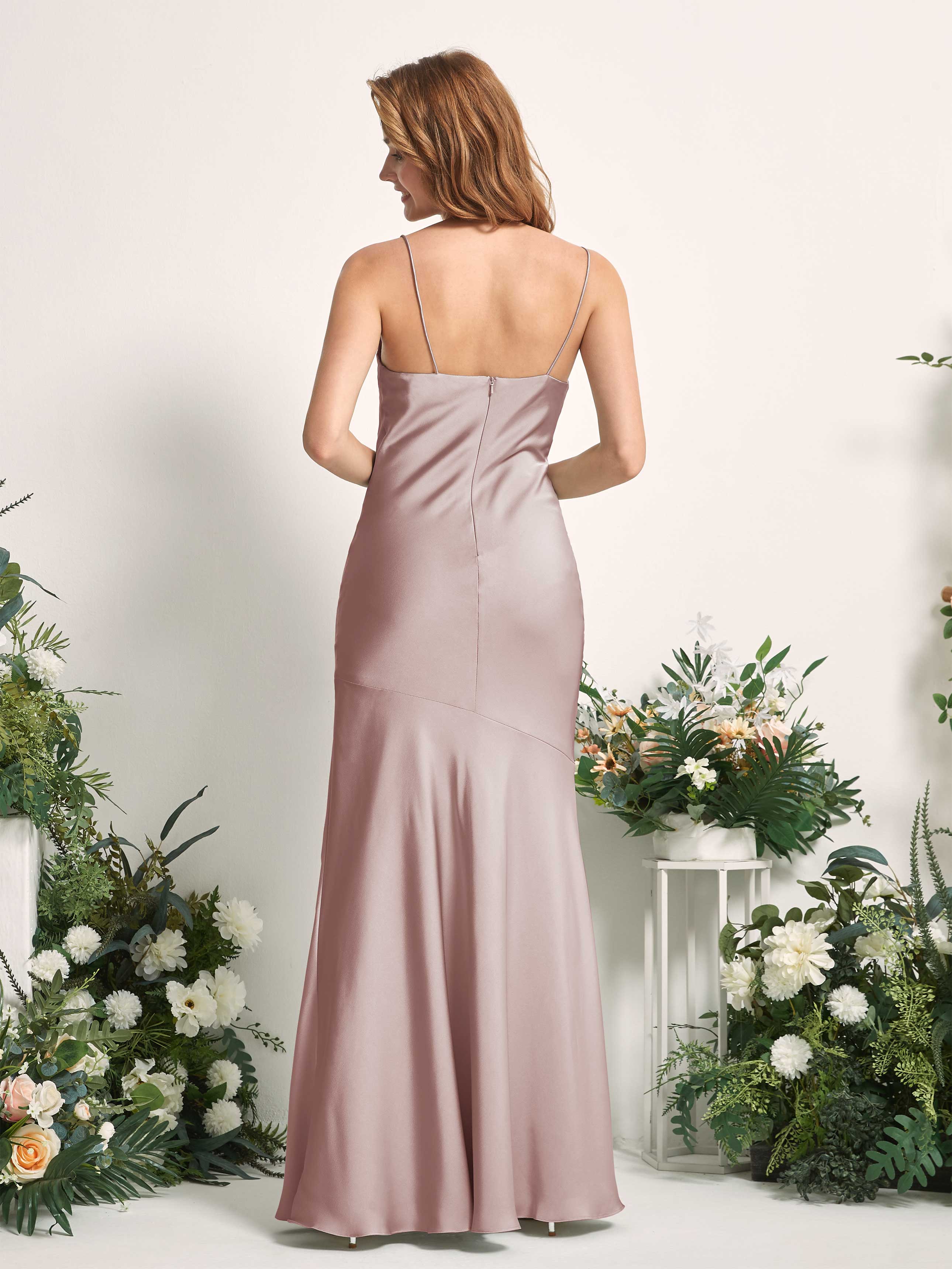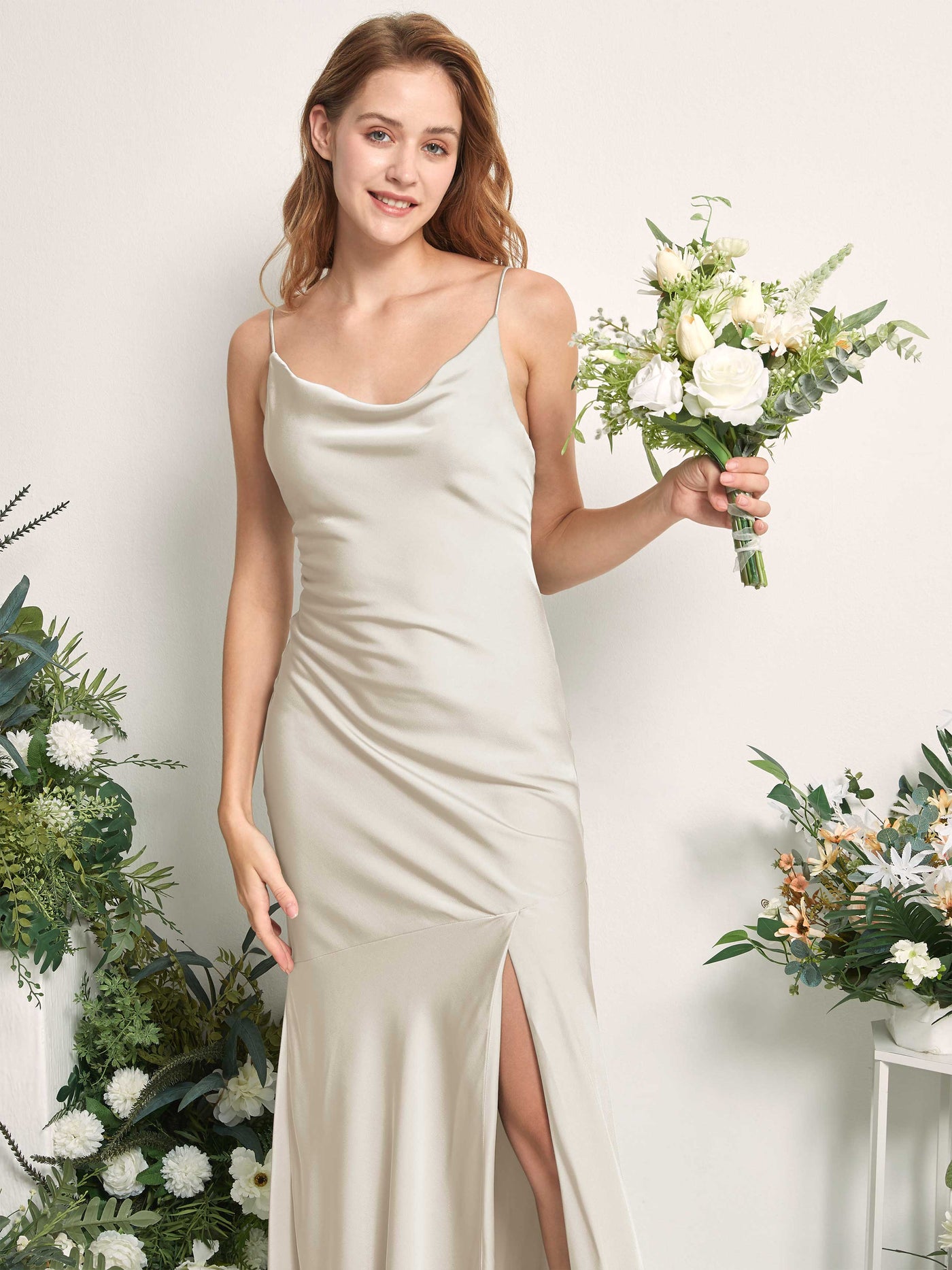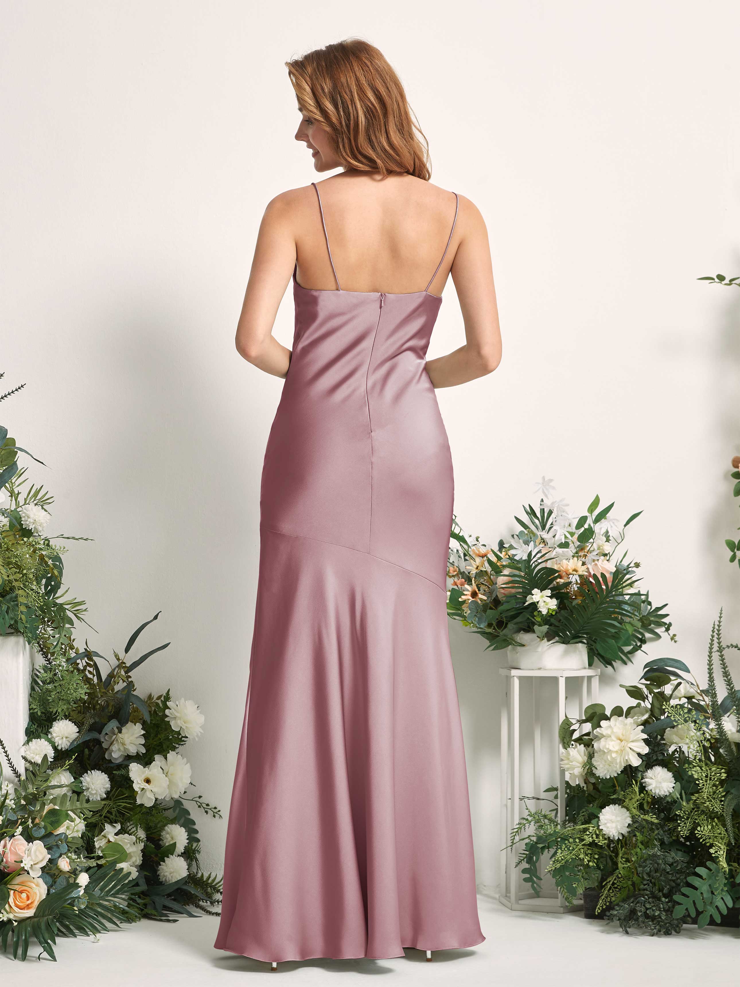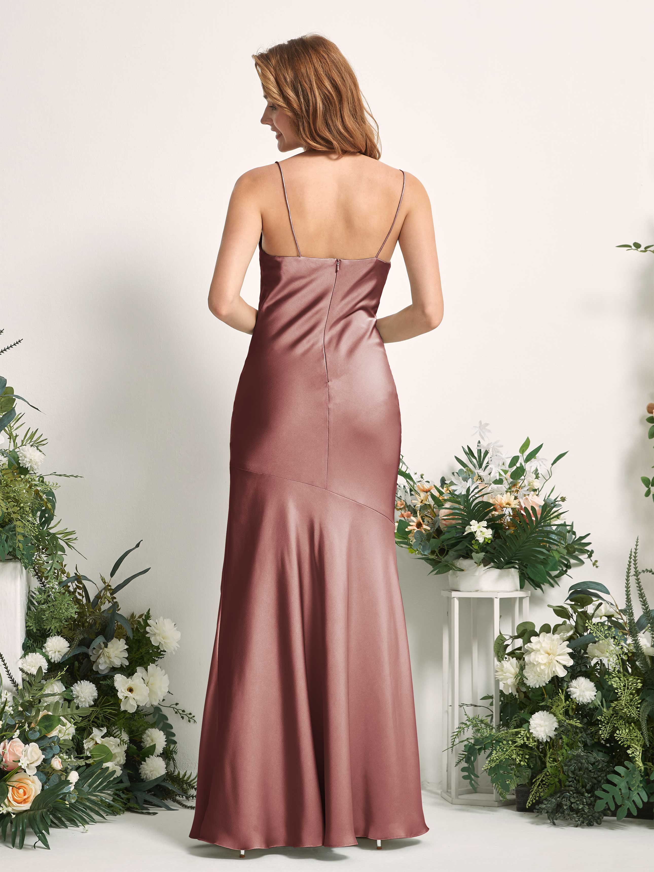 The Miranda Satin Dress is a captivating and sophisticated choice for your bridesmaids. This elegant gown is crafted from luxurious satin that drapes beautifully, showcasing a figure-flattering silhouette like a mermaid or sheath. The sophisticated cowl neck adds a touch of drama and elegance, while the leg slit creates a hint of allure. Available in a range of colors to complement your wedding palette.
