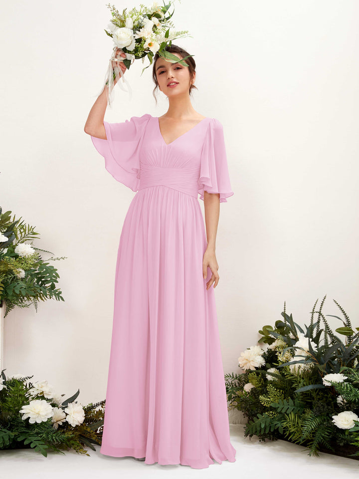 Carlyna Odette A-Line Ballet Pink Bridesmaid Dress Maxi Short Sleeve V-Neck Dress