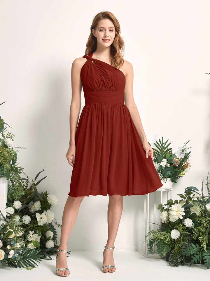 The Echo Chiffon Dress is a stunning bridesmaid option with a captivating one-shoulder neckline and a graceful A-line silhouette. Crafted from luxurious chiffon, it offers a touch of ethereal elegance. The dress boasts versatile styling options, including ruched detailing and a strappy back. Available in a range of colors to complement any wedding theme.