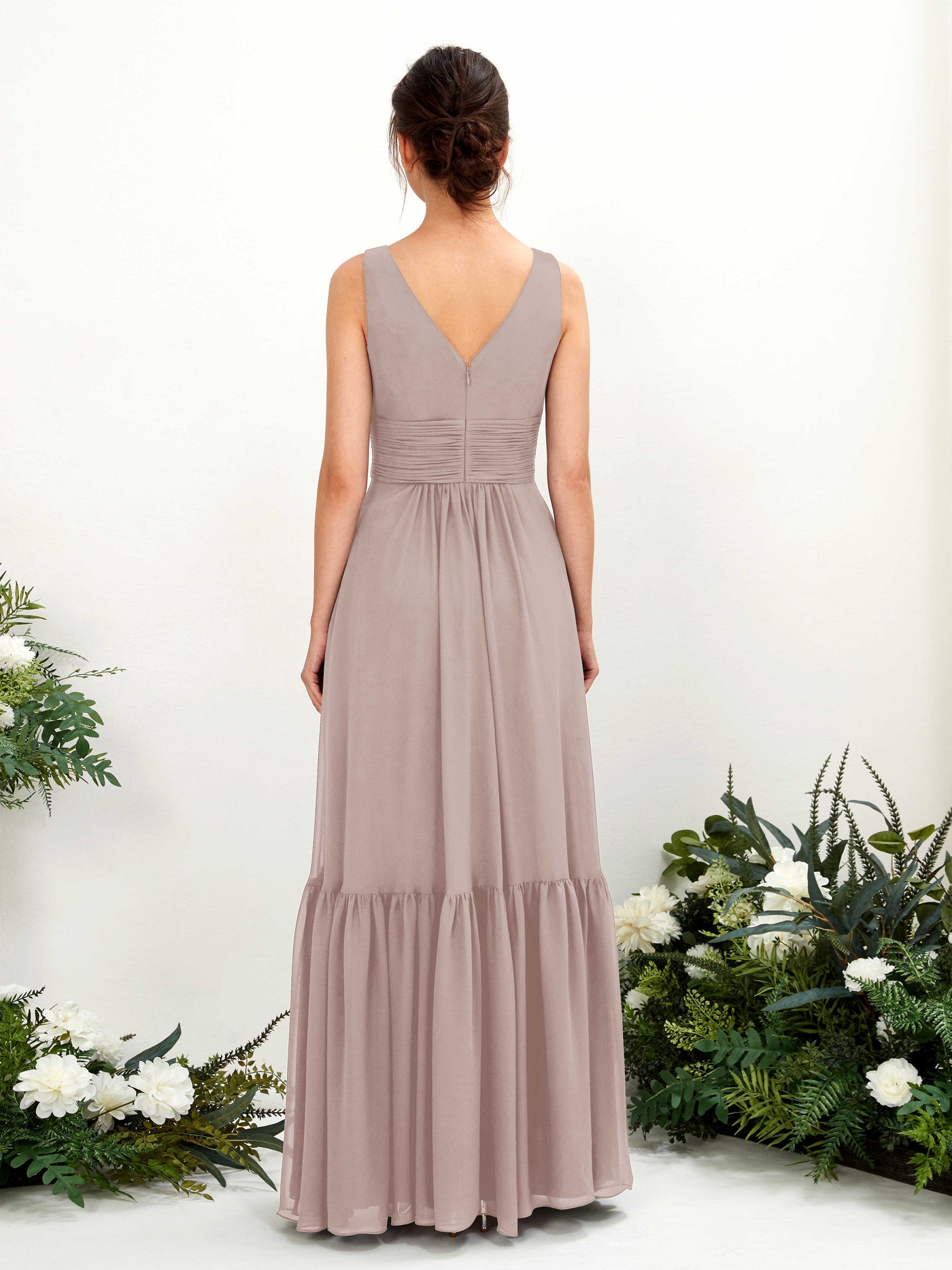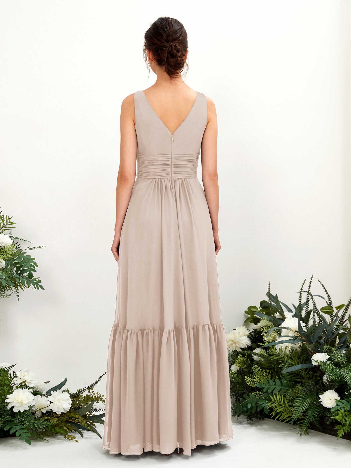 The Carlyna Alissa Chiffon Dress is a romantic and elegant choice for your bridesmaids. This flowing maxi dress features a flattering A-line silhouette with delicate tiers that create a whimsical and feminine look. The choice of V-neck or sweetheart neckline allows each bridesmaid to find the perfect fit. The high waist accentuates curves, while the alluring V-back adds a touch of drama and sophistication. Delicate ruching details enhance the overall elegance of this chiffon masterpiece. The Alissa Chiffon Dress is designed to make your bridesmaids feel confident and beautiful on your special day.