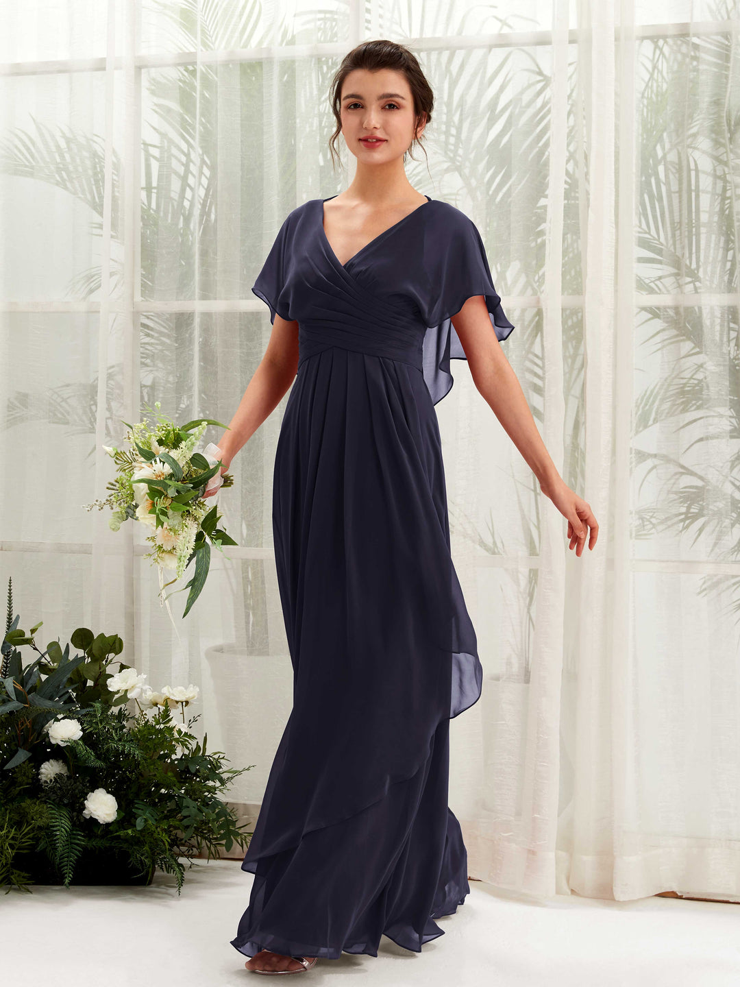 Carlyna Darlene A-Line Dark Navy Bridesmaid Dress Maxi Short Sleeve V-Neck Dress Front View
