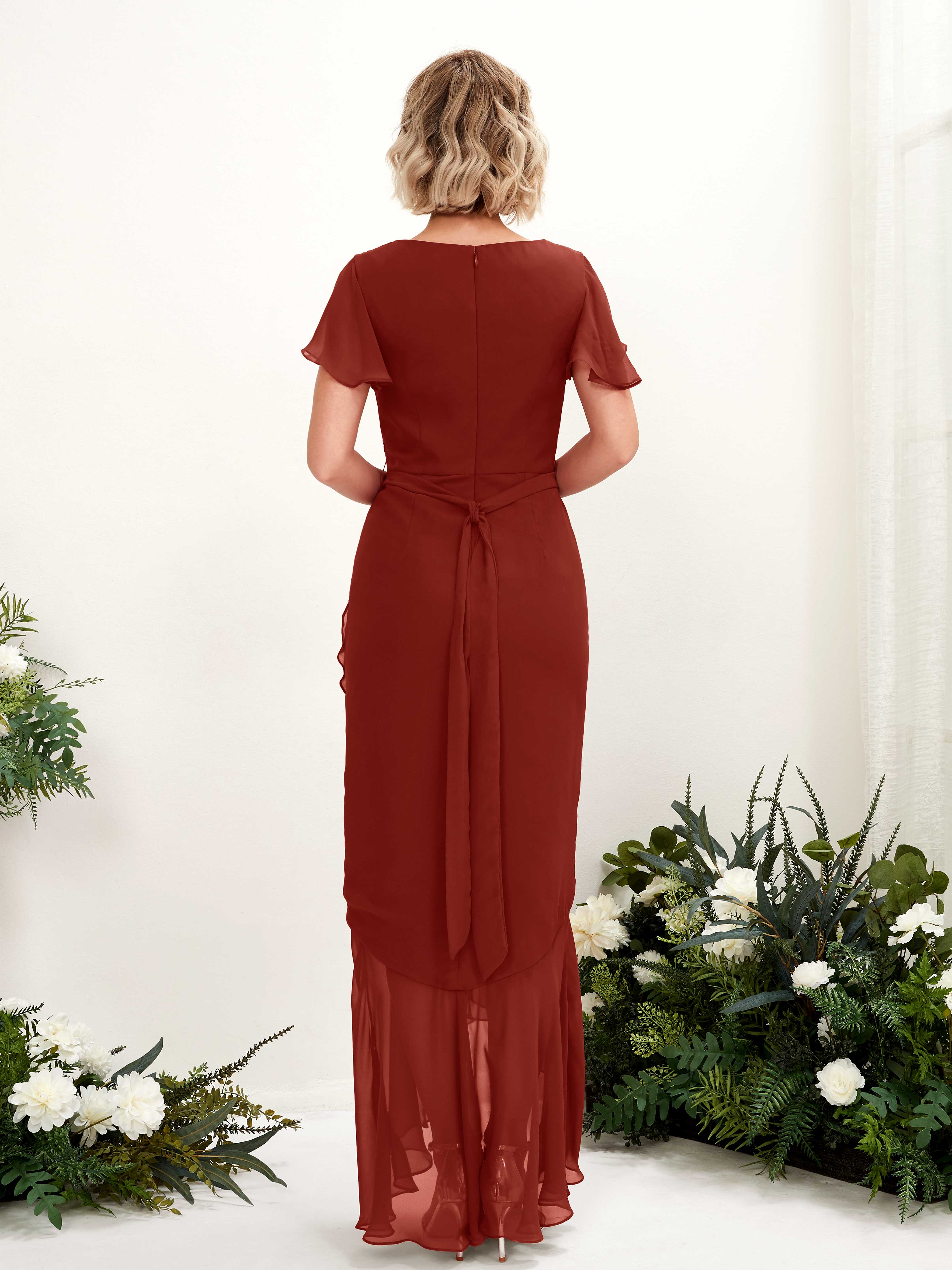 Carlyna Eartha Mermaid Rust Bridesmaid Dress Maxi Cap Sleeve V-Neck Dress Back View