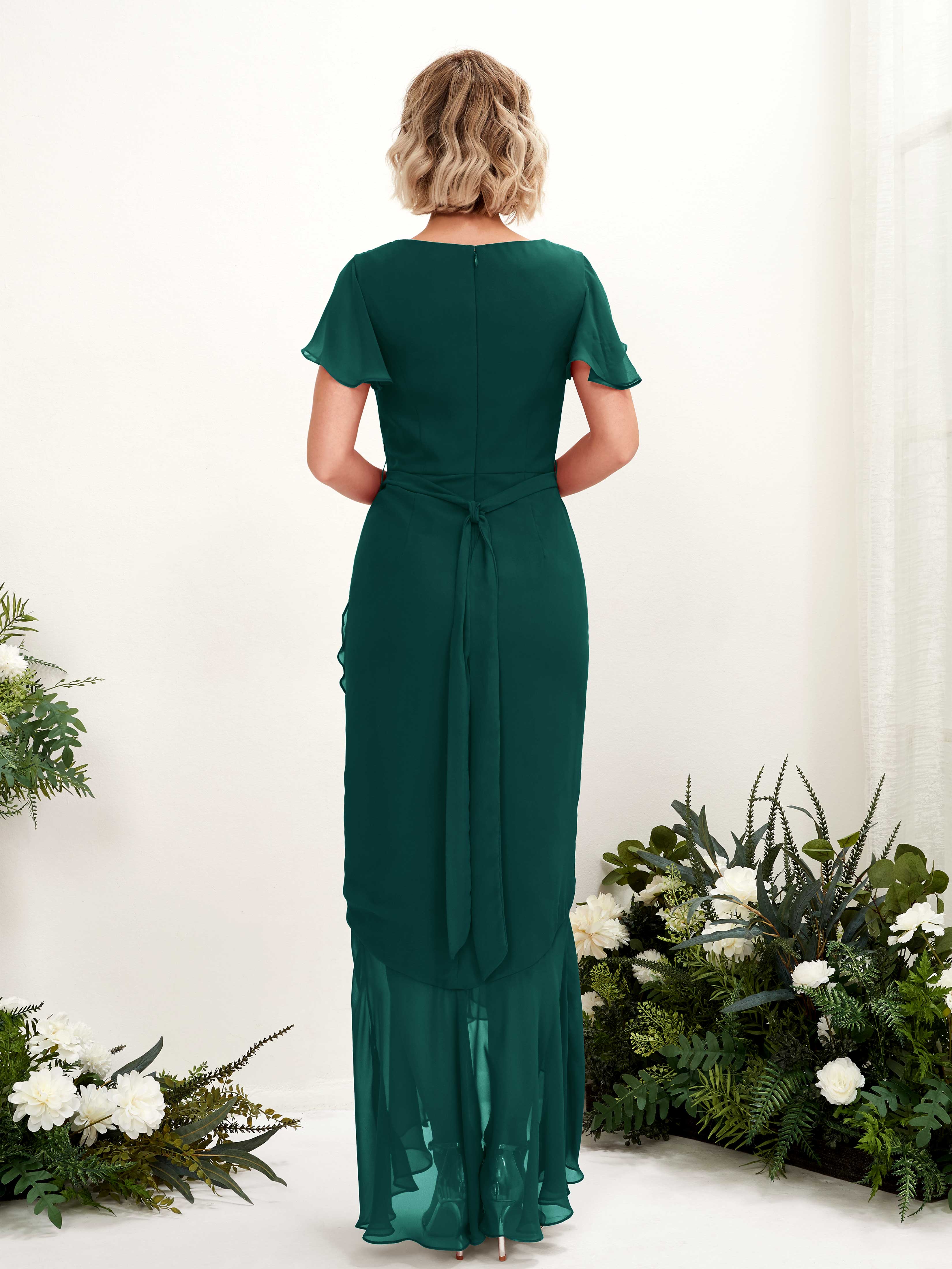 Carlyna Eartha Mermaid Dark Emerald Bridesmaid Dress Maxi Cap Sleeve V-Neck Dress Front View