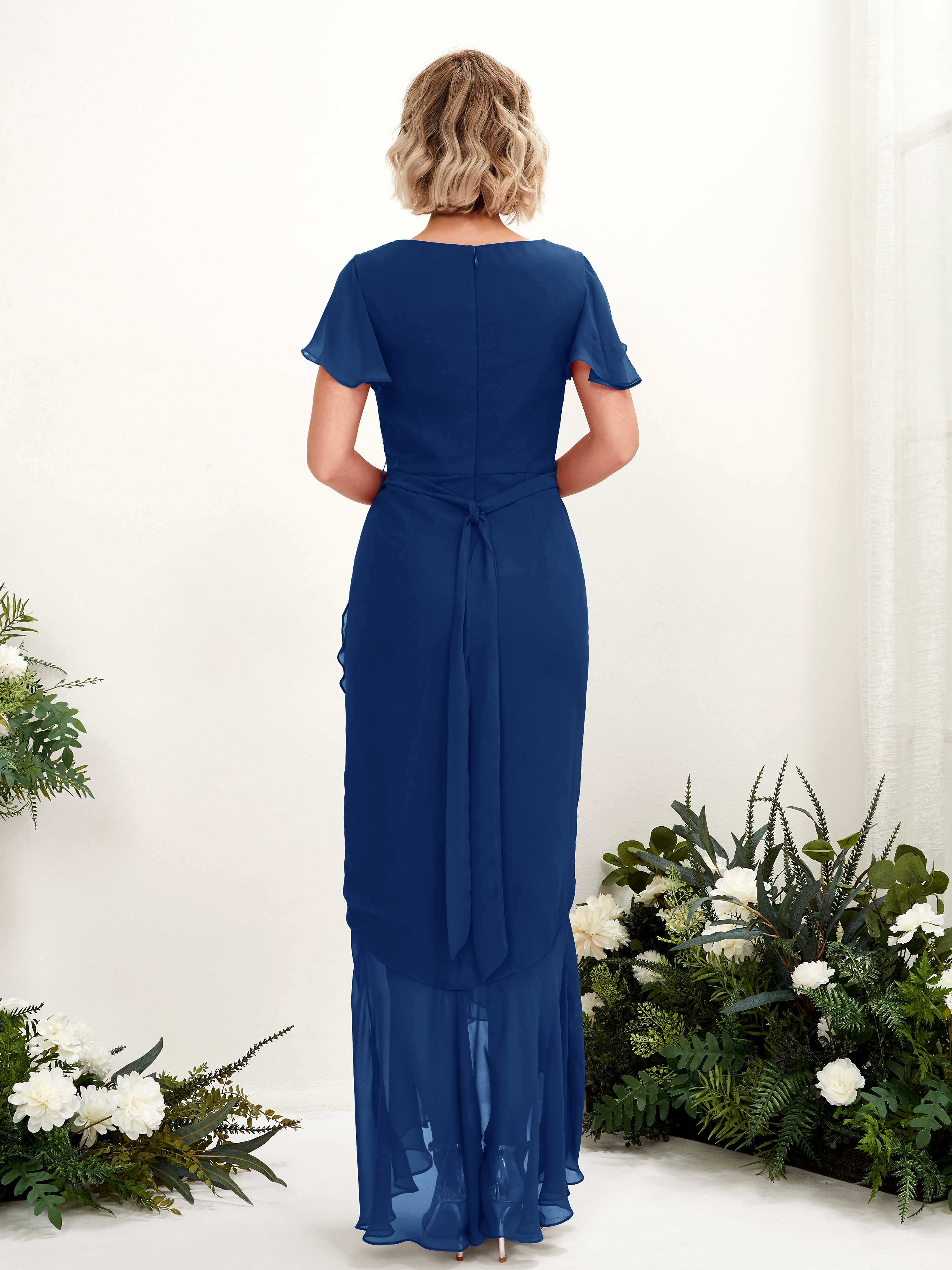 Carlyna Eartha Mermaid Royal Blue Bridesmaid Dress Maxi Cap Sleeve V-Neck Dress Back View