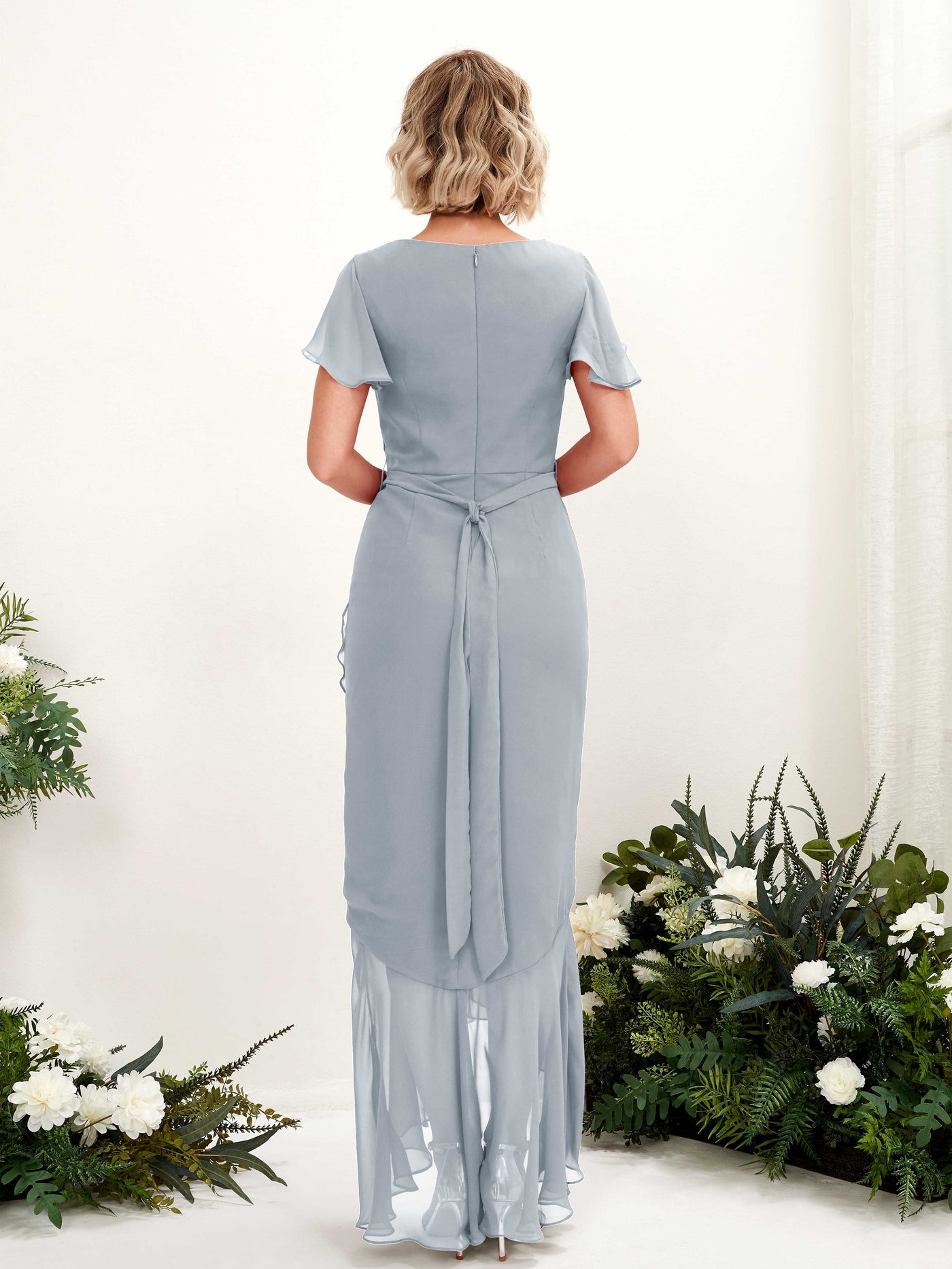 Carlyna Eartha Mermaid Dove Bridesmaid Dress Maxi Cap Sleeve V-Neck Dress Back View