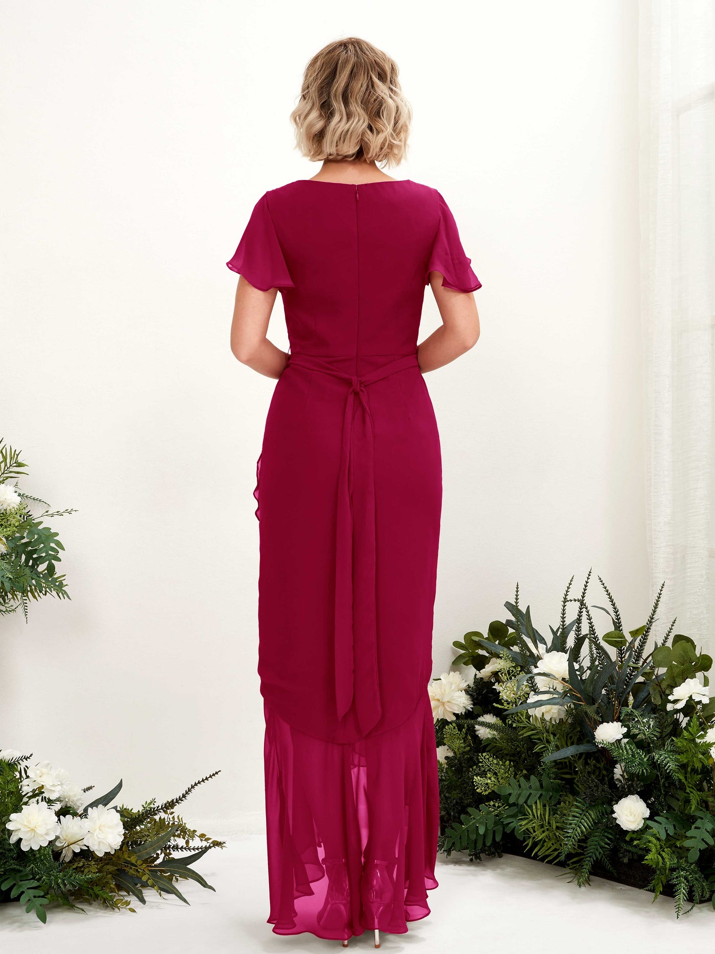 Carlyna Eartha Mermaid Jester Red Bridesmaid Dress Maxi Cap Sleeve V-Neck Dress Back View