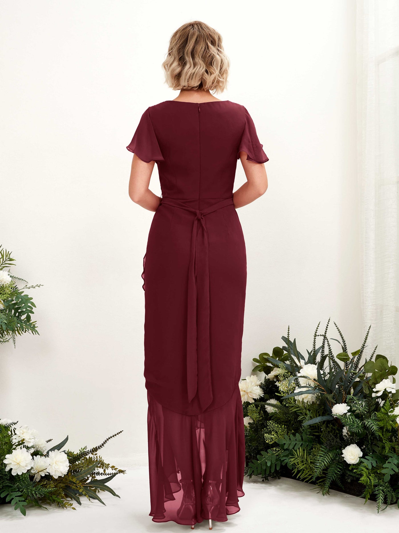 Carlyna Eartha Mermaid Burgundy Bridesmaid Dress Maxi Cap Sleeve V-Neck Dress Front View