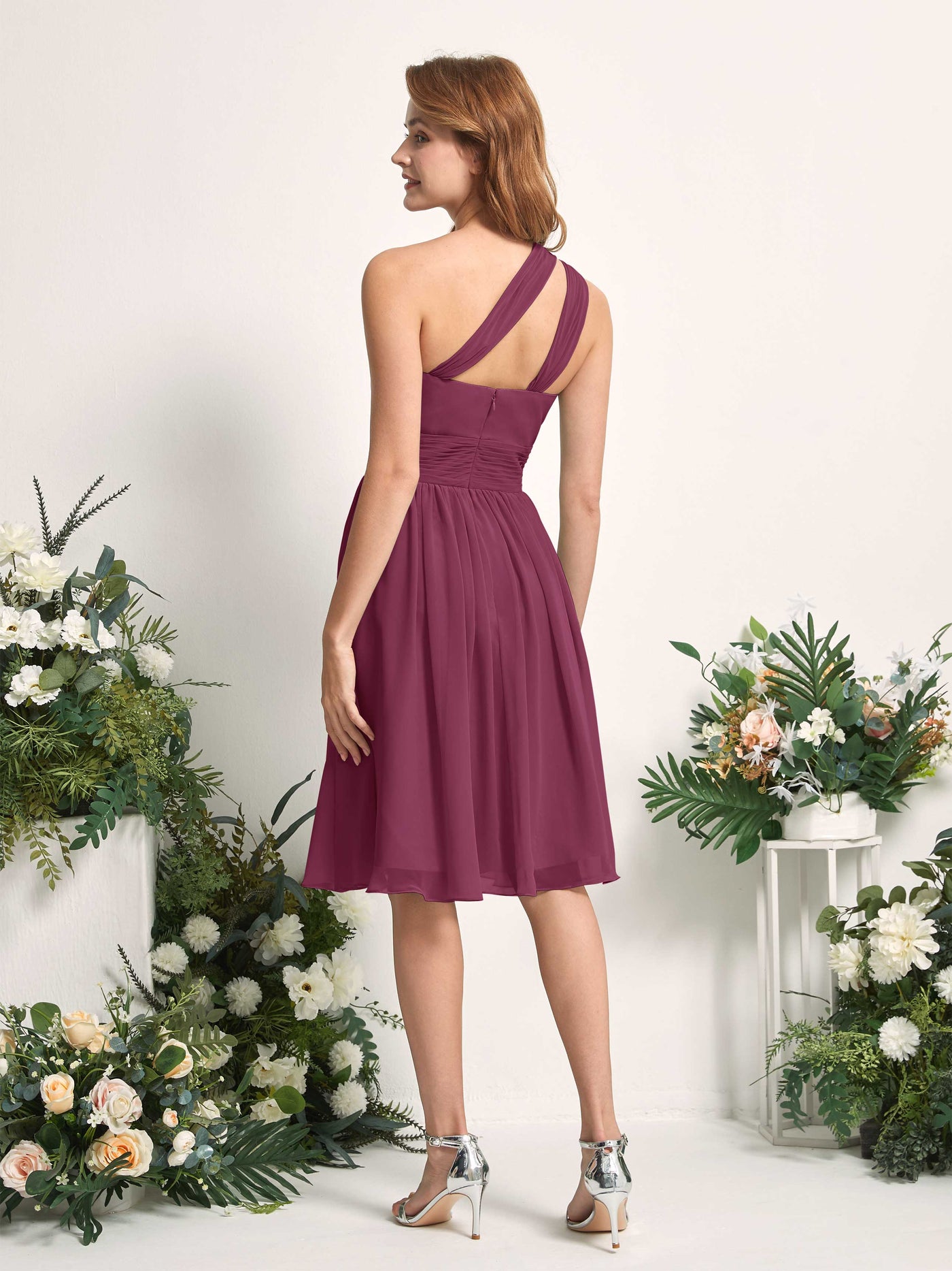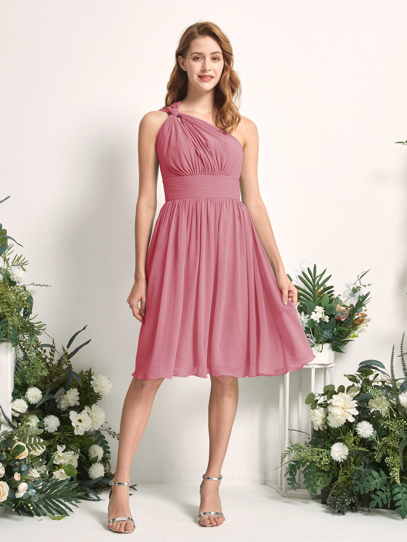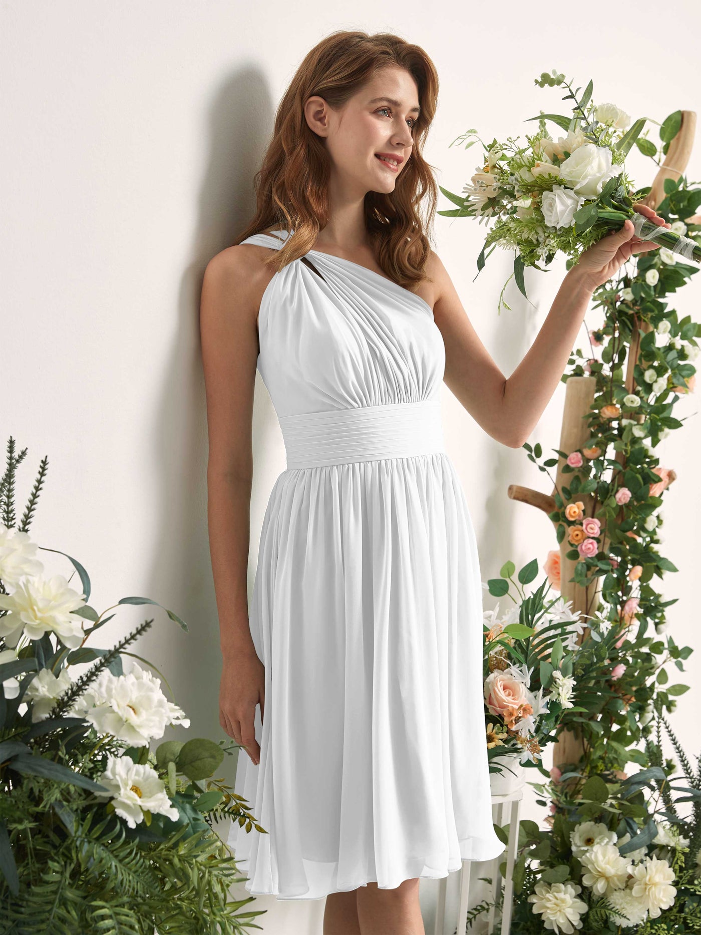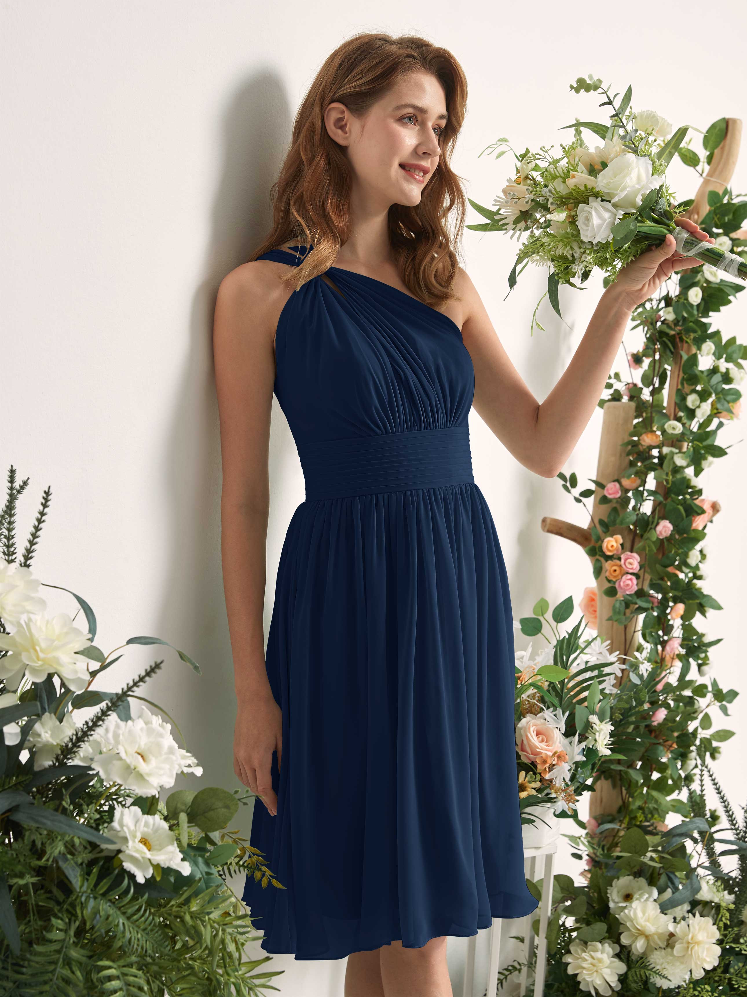 The Echo Chiffon Dress is a stunning bridesmaid option with a captivating one-shoulder neckline and a graceful A-line silhouette. Crafted from luxurious chiffon, it offers a touch of ethereal elegance. The dress boasts versatile styling options, including ruched detailing and a strappy back. Available in a range of colors to complement any wedding theme.