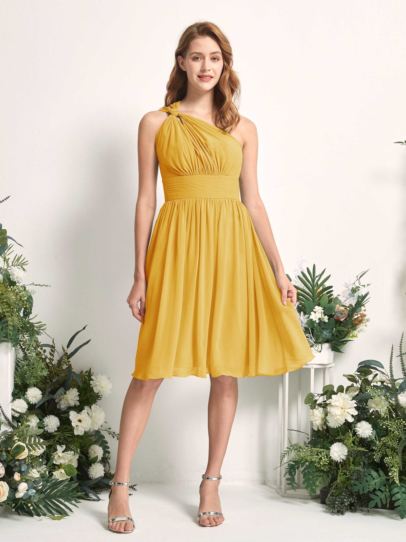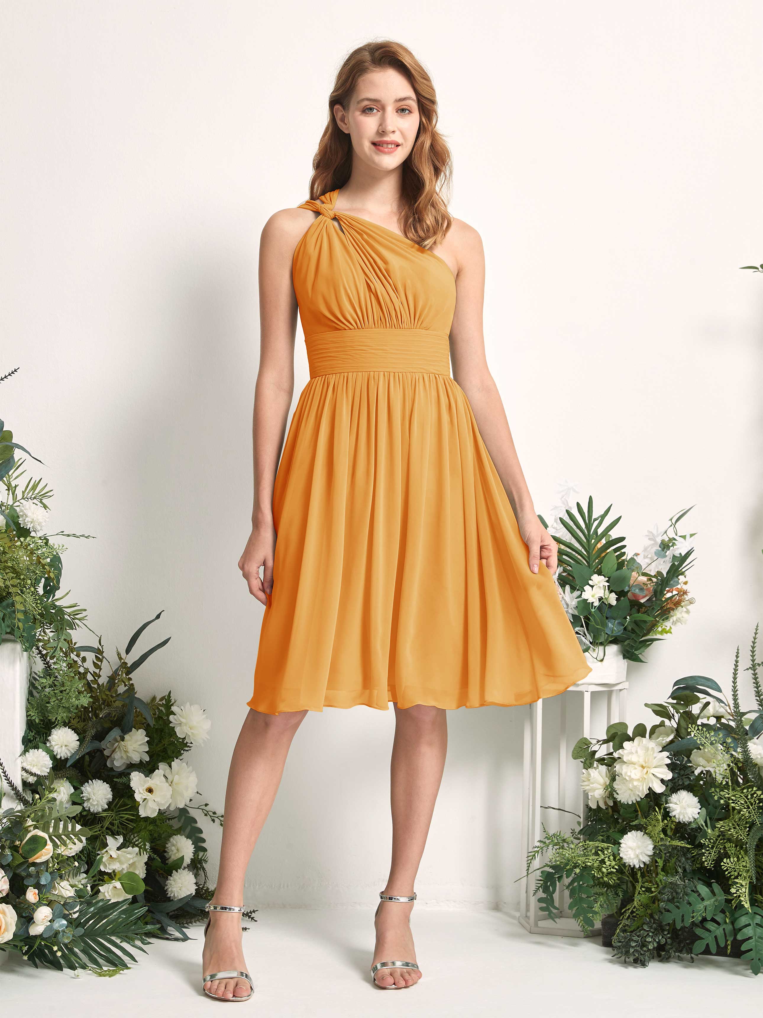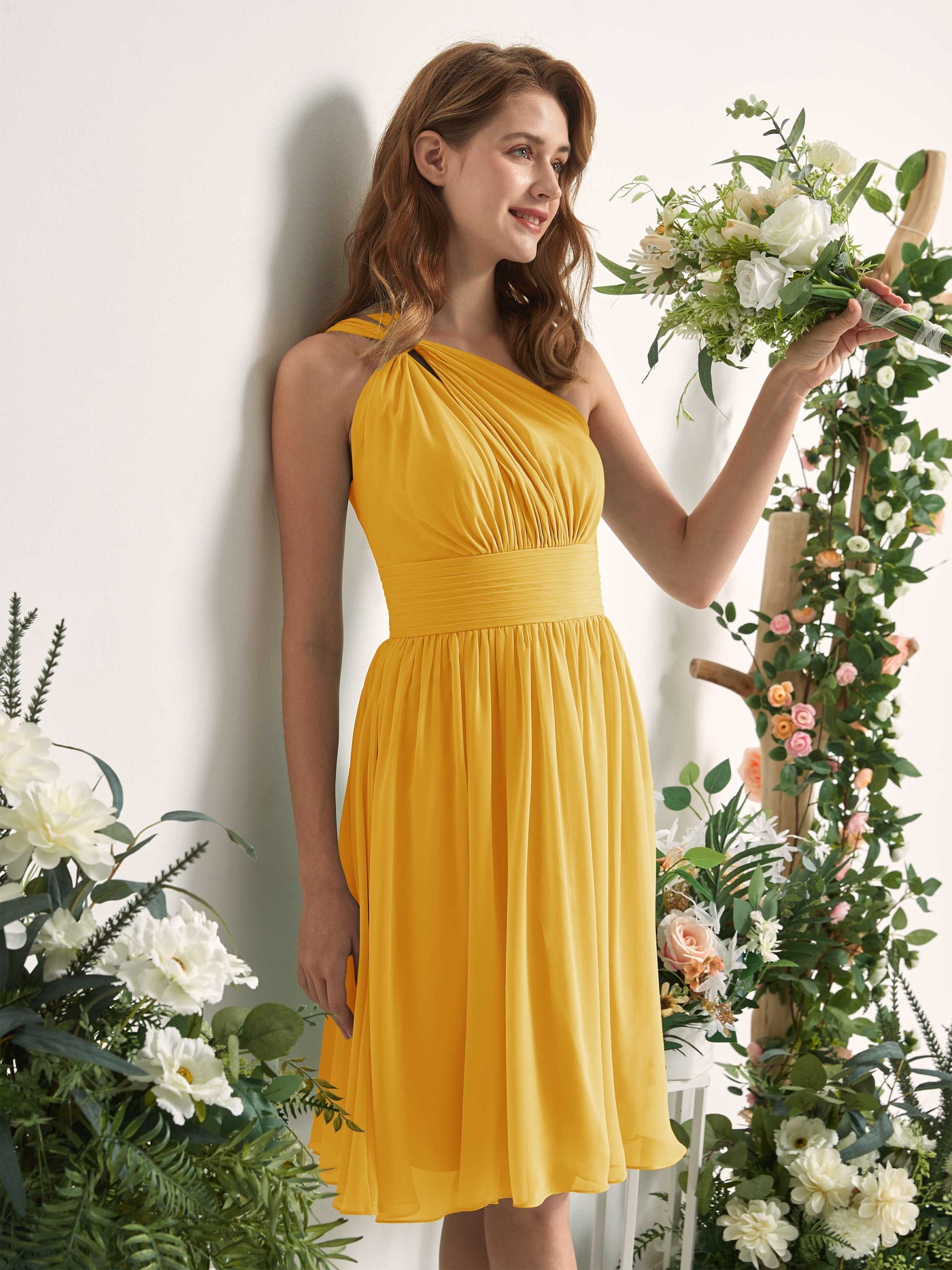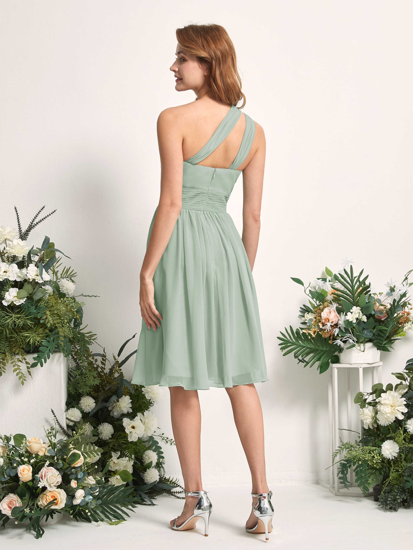 The Echo Chiffon Dress is a stunning bridesmaid option with a captivating one-shoulder neckline and a graceful A-line silhouette. Crafted from luxurious chiffon, it offers a touch of ethereal elegance. The dress boasts versatile styling options, including ruched detailing and a strappy back. Available in a range of colors to complement any wedding theme.