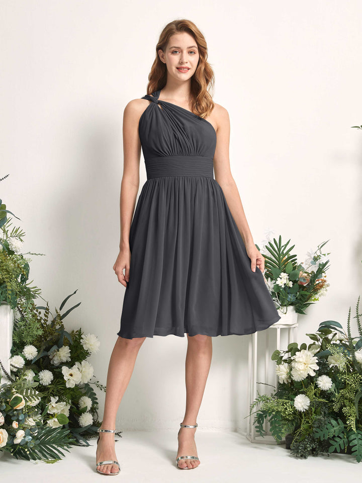 The Echo Chiffon Dress is a stunning bridesmaid option with a captivating one-shoulder neckline and a graceful A-line silhouette. Crafted from luxurious chiffon, it offers a touch of ethereal elegance. The dress boasts versatile styling options, including ruched detailing and a strappy back. Available in a range of colors to complement any wedding theme.