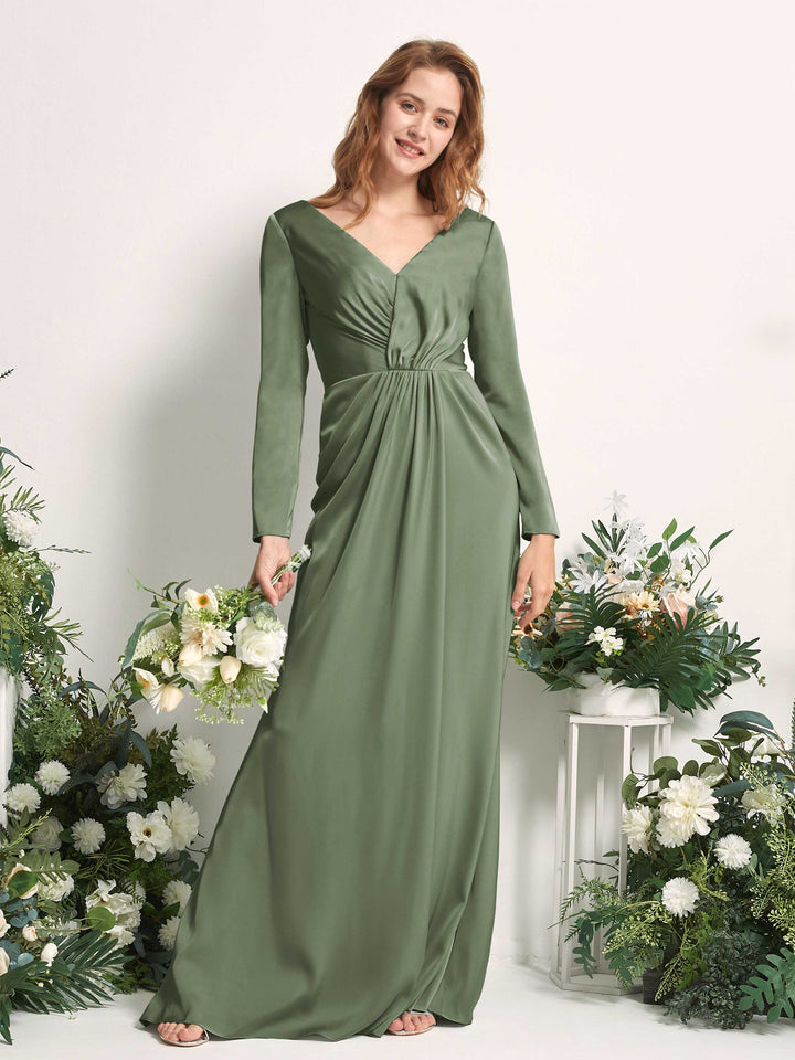 The Alicia Satin Dress exudes timeless elegance with its luxurious satin fabric and classic silhouette. This captivating gown features flattering long sleeves that add a touch of sophistication. The V-neckline creates a graceful frame for the face, while the flowing skirt moves beautifully. Available in a range of colors to complement your wedding palette, the Alicia is a perfect choice for bridesmaids seeking a sophisticated and timeless look.