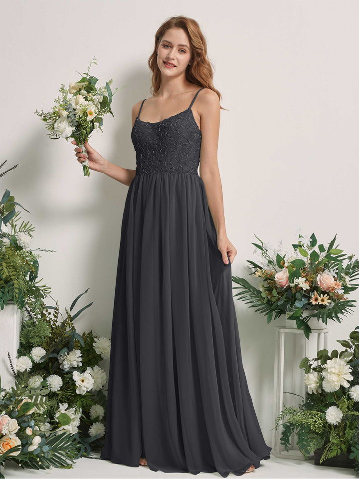 Carlyna Verna A-Line Steel Gray Beaded Bridesmaid Dress Maxi Sleeveless Sweetheart Dress
