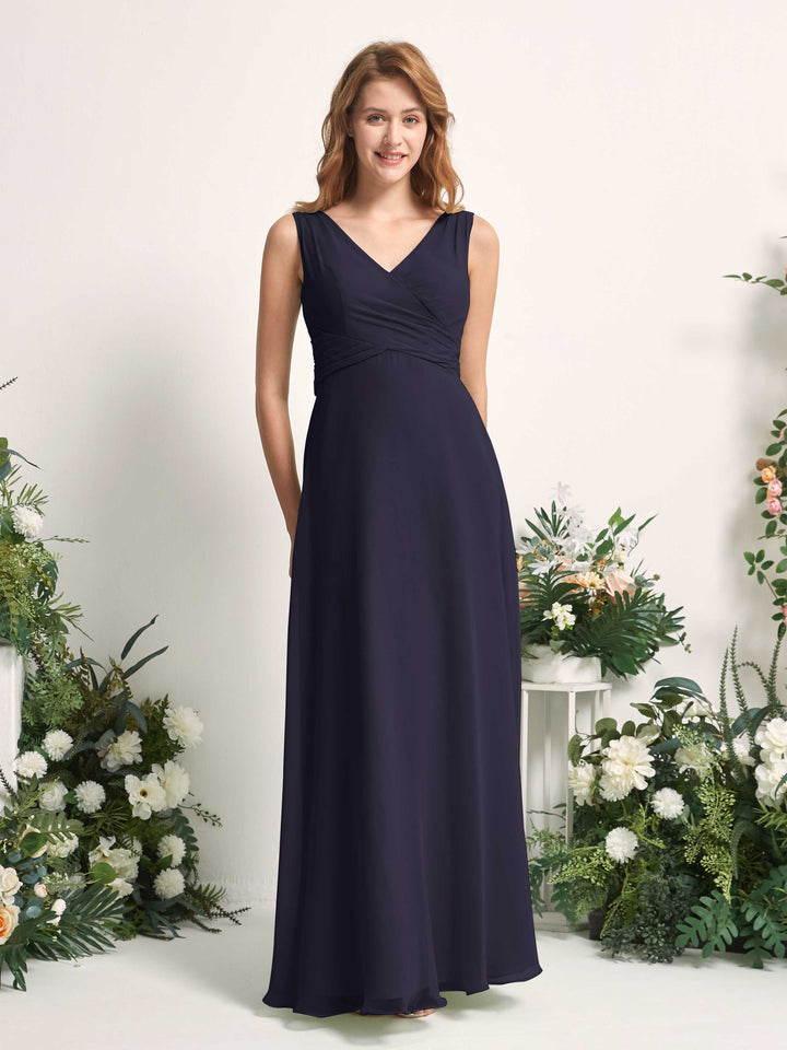 Carlyna June A-Line Dark Navy Bridesmaid Dress Maxi Sleeveless V-Neck Dress