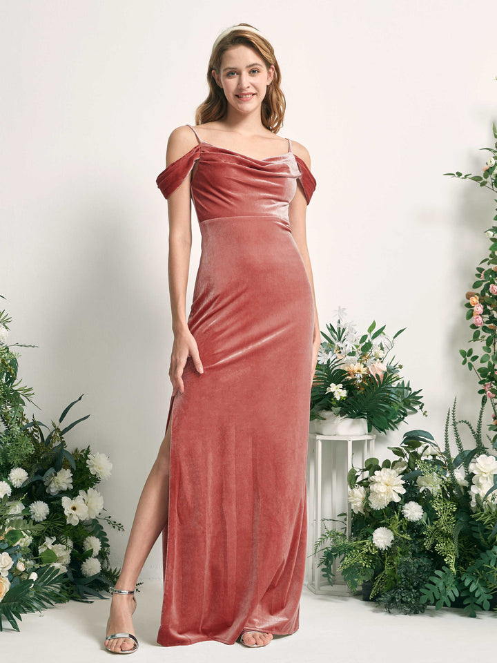 Carlyna Salome Mermaid Dusty Rose Velvet Bridesmaid Dress Maxi Sleeveless Sweetheart Dress