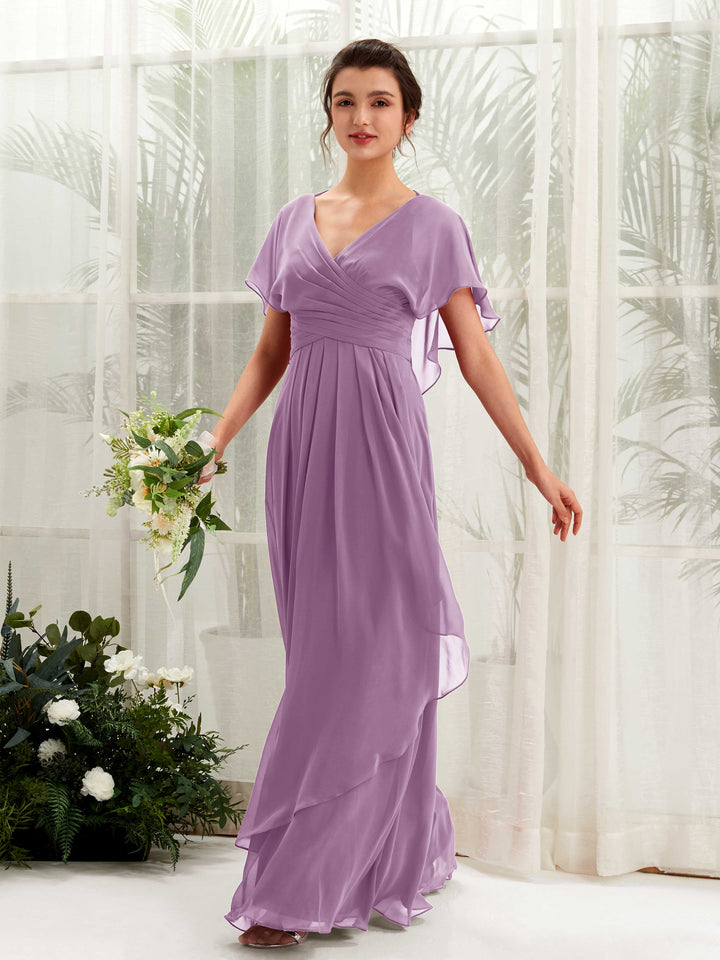 The Carlyna Darlene Chiffon Dress is a captivating and elegant choice for your bridesmaids. This flowing maxi dress offers versatile design elements, including short or cap sleeves for added coverage and a choice of V-neck or surplice necklines. The A-line silhouette gracefully skims the curves, while the alluring strappy back or low back adds a touch of drama and sophistication. Delicate ruching and playful ruffles enhance the overall elegance of this chiffon masterpiece. The Darlene Chiffon Dress is designed to make your bridesmaids feel confident and beautiful on your special day.