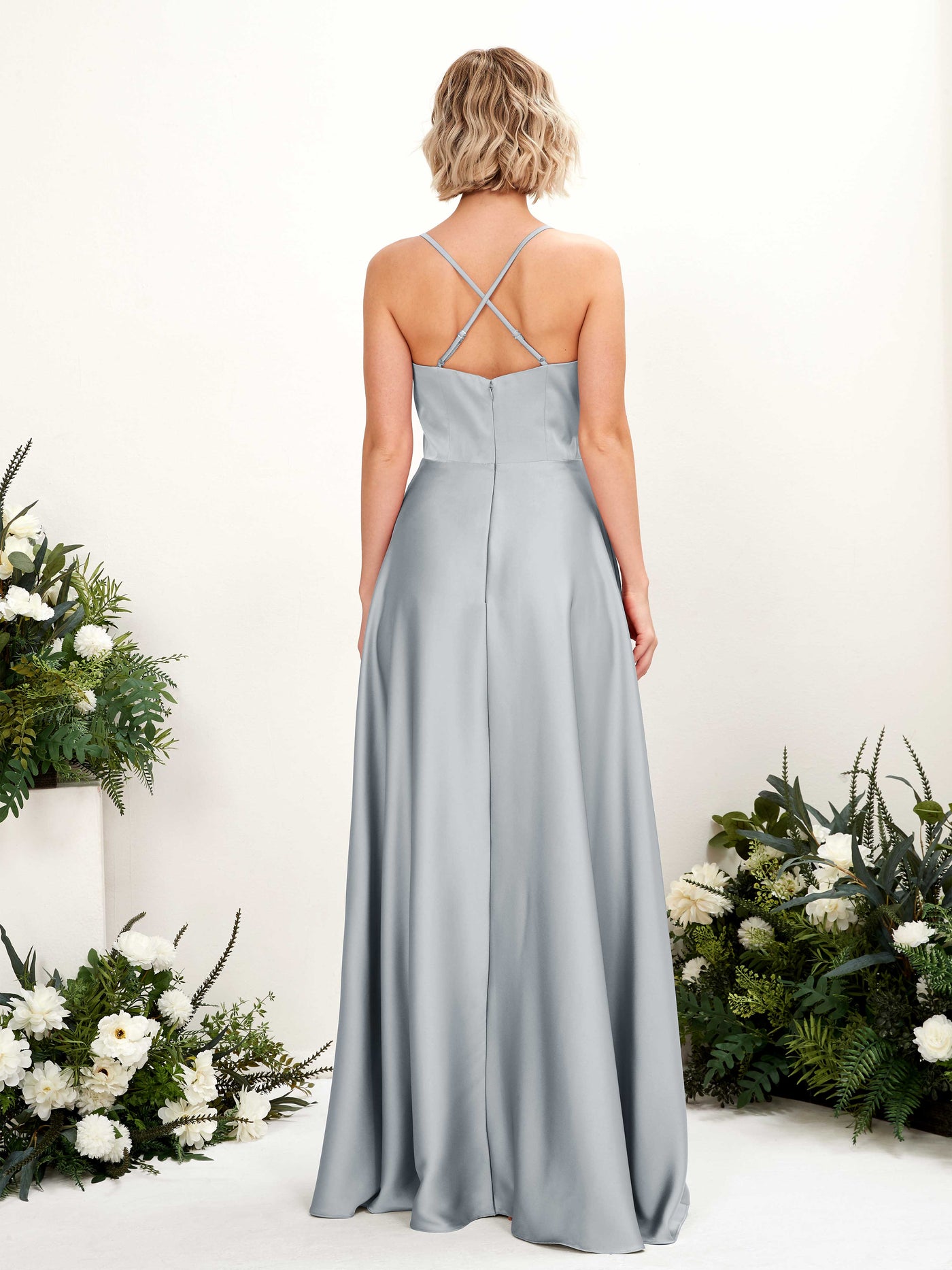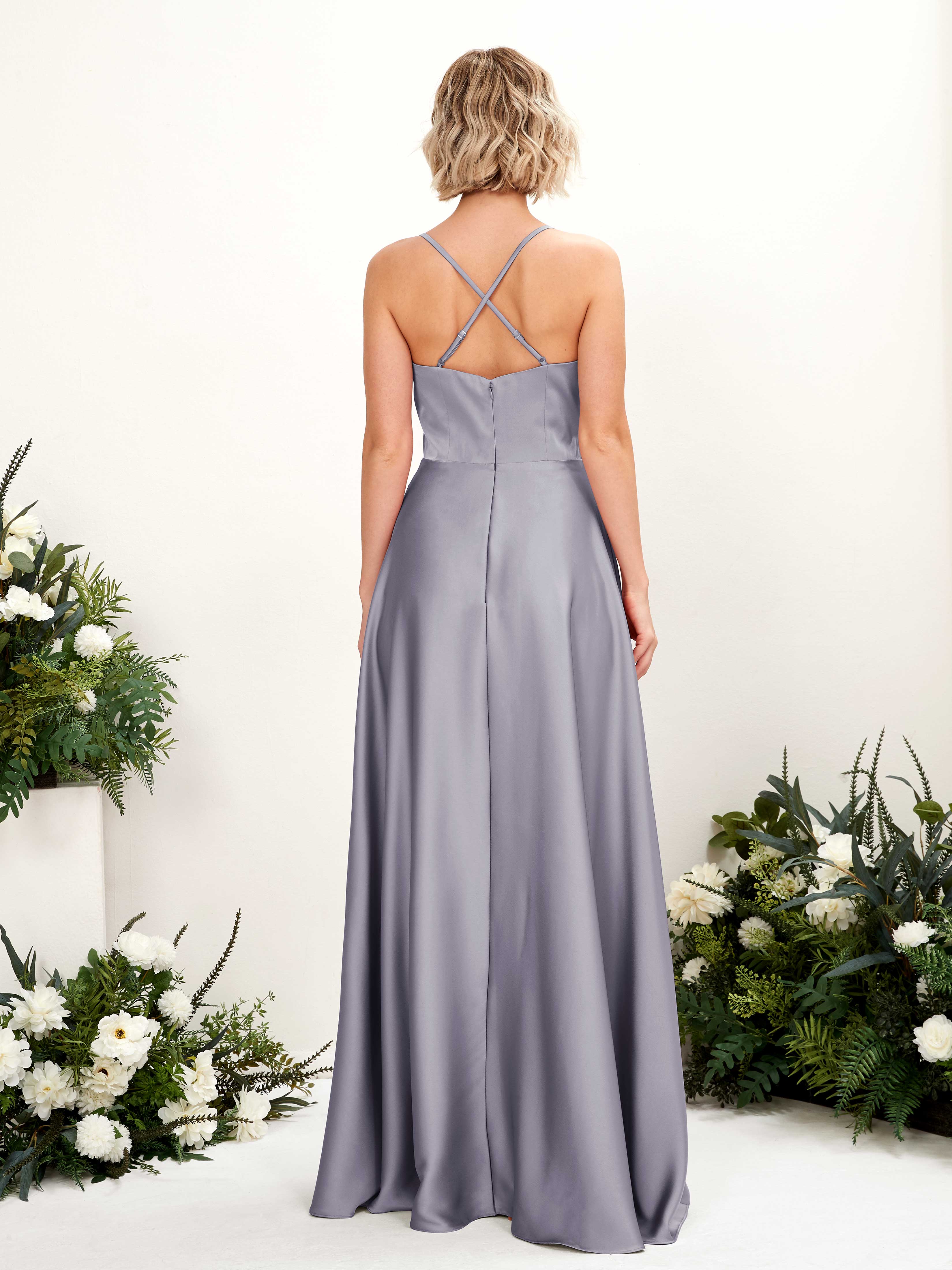 Carlyna Lenoya A-Line Steel Gray Satin Bridesmaid Dress Maxi Sleeveless V-Neck Dress