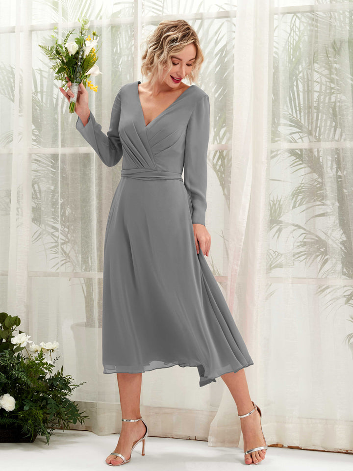 The Carlyna Joanna Chiffon Dress is a romantic and elegant choice for your bridesmaids. This midi-length dress features long sleeves for added coverage and a versatile design with options for a V-neck or surplice neckline. The A-line silhouette gracefully skims the curves, while the alluring V-back adds a touch of drama and sophistication. Delicate ruching details enhance the overall elegance of this chiffon masterpiece. The Joanna Chiffon Dress is perfect for a fall or winter wedding or any occasion that calls for a touch of timeless elegance.