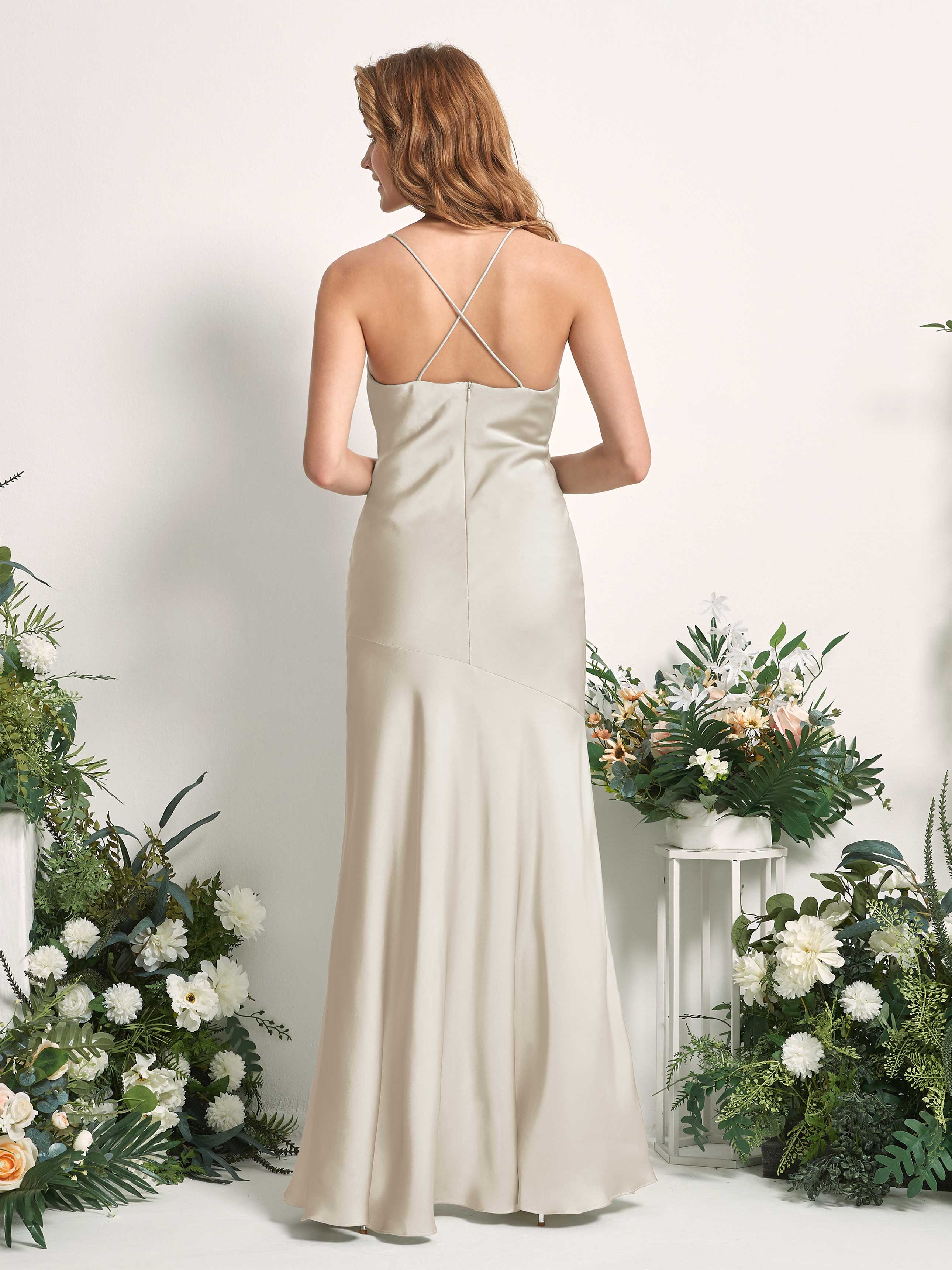 Carlyna Florence Mermaid Champagne Satin Bridesmaid Dress Maxi Sleeveless Cowl Neck Dress Back View