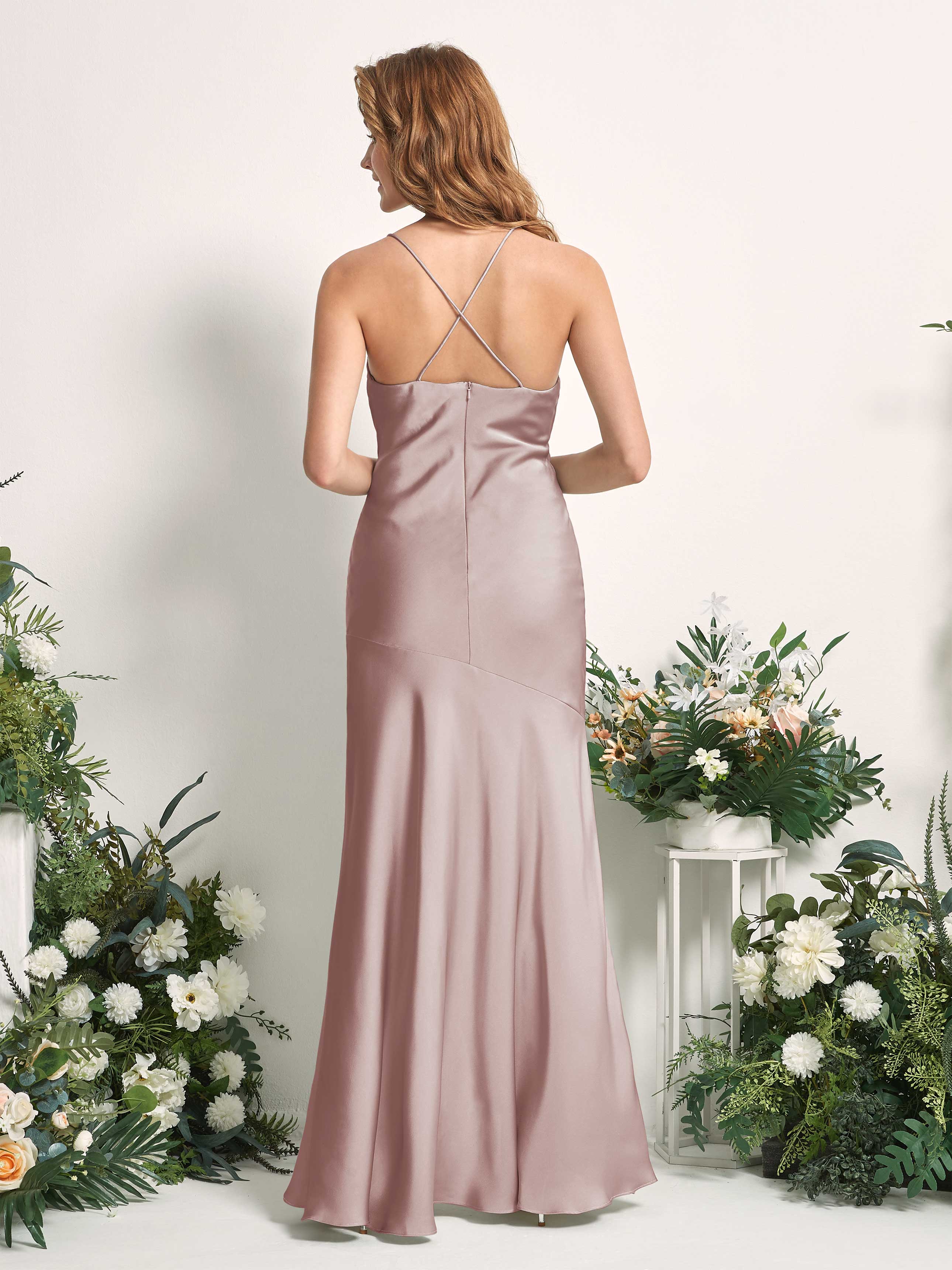 Carlyna Florence Mermaid Desert Rose Satin Bridesmaid Dress Maxi Sleeveless Cowl Neck Dress Back View