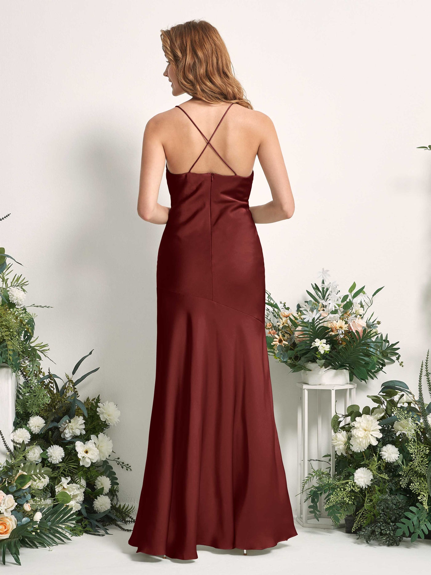 Carlyna Florence Mermaid Burgundy Satin Bridesmaid Dress Maxi Sleeveless Cowl Neck Dress Back View