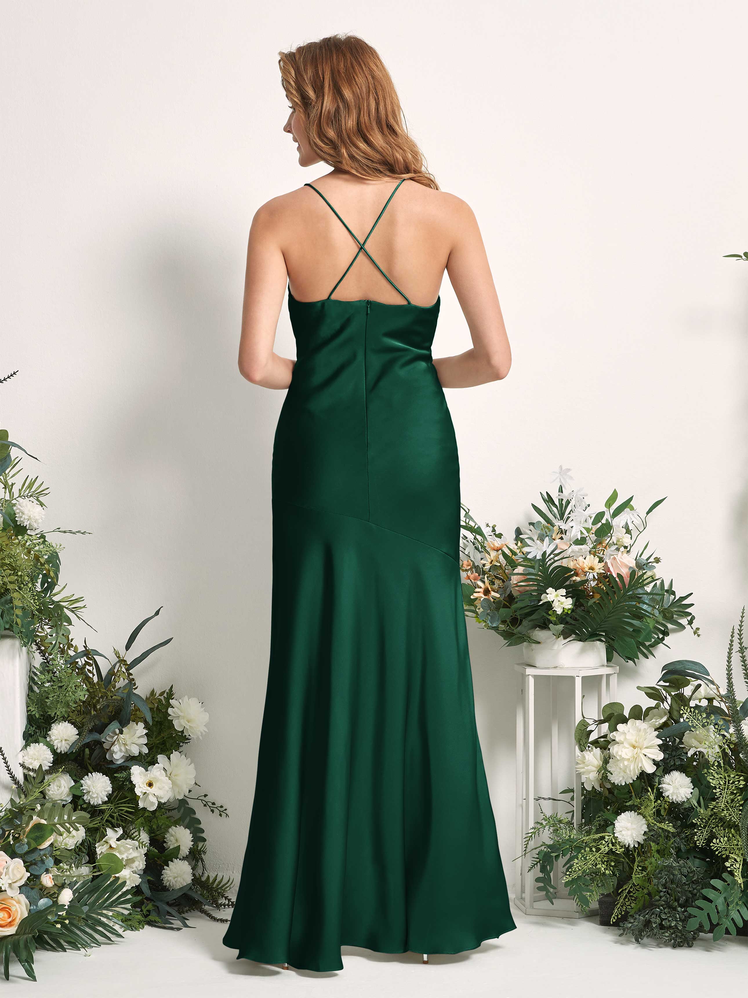 Carlyna Florence Mermaid Hunter Green Satin Bridesmaid Dress Maxi Sleeveless Cowl Neck Dress Back View