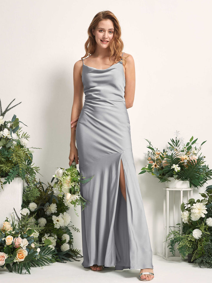 Carlyna Miranda Mermaid Steel Gray Satin Bridesmaid Dress Maxi Sleeveless Cowl Neck Dress