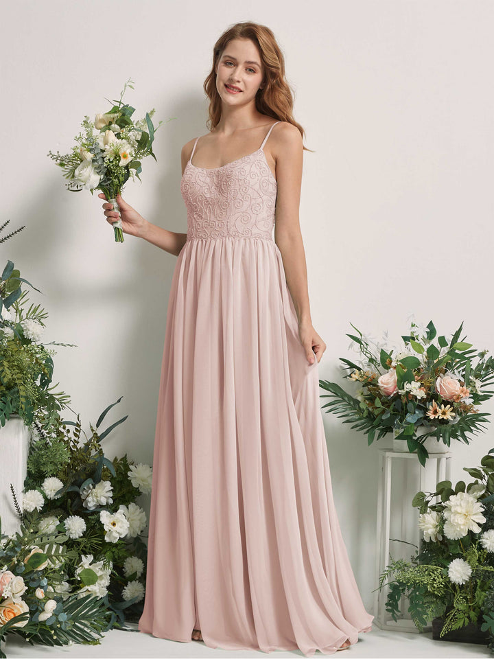 Carlyna Verna A-Line Champagne Rose Beaded Bridesmaid Dress Maxi Sleeveless Sweetheart Dress
